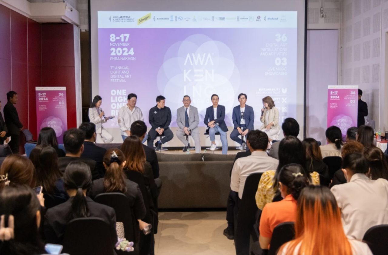 ณัทธร ศรีนิเวศน์ ผู้ช่วยกรรมการผู้จัดการใหญ่ Toyota Motor Thailand พร้อมด้วย คณะผู้จัดงานเทศกาล Awakening Festivals รวมถึงกรุงเทพมหานคร การท่องเที่ยวแห่งประเทศไทย (ททท.) สํานักงานส่งเสริมการจัดประชุมและนิทรรศการ (องค์การมหาชน) หรือ ทีเส็บ และพันธมิตรทั้งภาครัฐและเอกชน จับมือสร้างปรากฏการณ์แห่งแสงสีกับ Awakening Bangkok 2024 เทศกาลแสงไฟและศิลปะดิจิทัลประจำปีของกรุงเทพฯ ที่กลับมาปลุกเขตพระนครให้สว่างไสวด้วยไฟแห่งแรงบันดาลใจและความคิดสร้างสรรค์อีกครั้ง ภายใต้ธีม One Light, One Rises ปลุกไฟย่าน เติมไฟคน ระหว่างวันที่ 8-17 พฤศจิกายน 2567 ตั้งแต่เวลา 18.00-23.00 น.