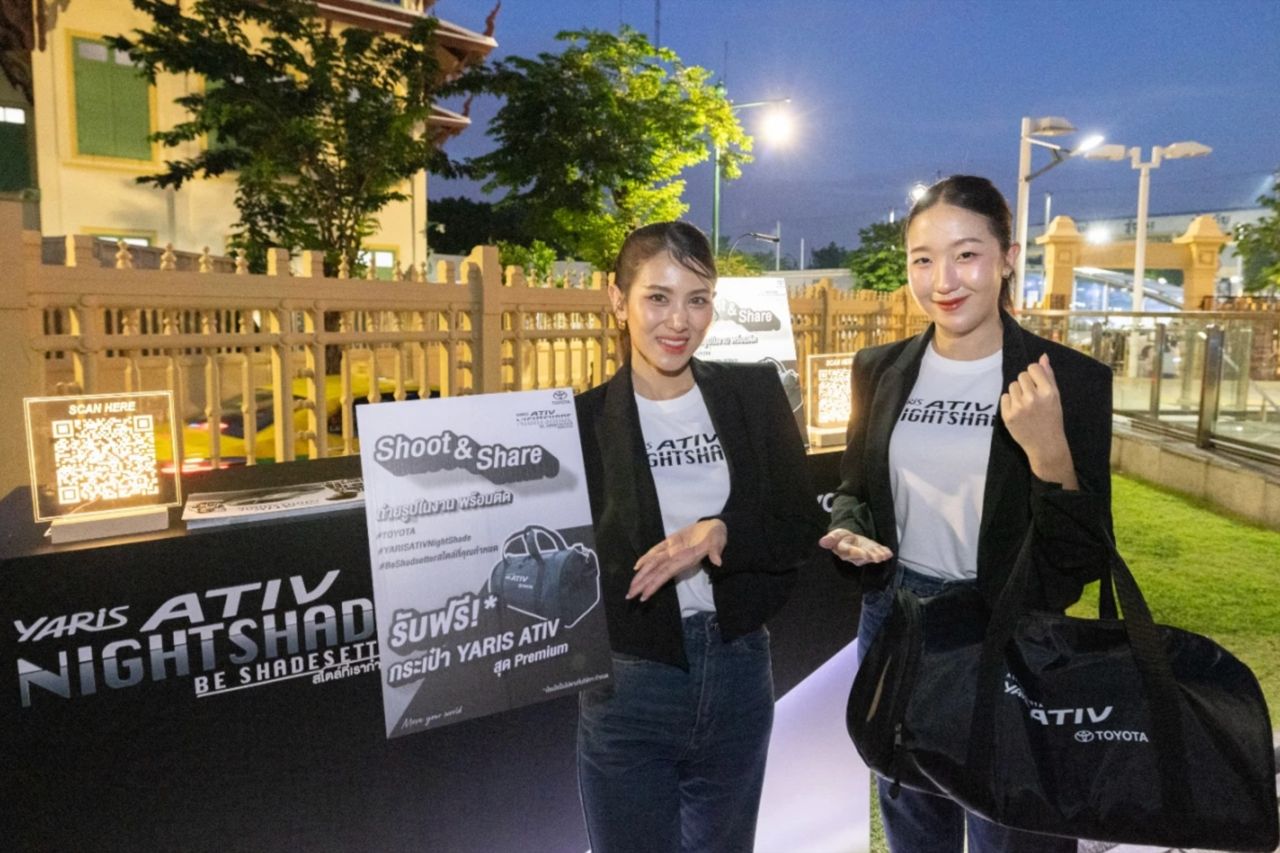 สัมผัสรถ TOYOTA YARIS ATIV NIGHTSHADE ได้ที่บริเวณมิวเซียมสยาม เดินทางสะดวกเพียงแค่ลงสถานี MRT สนามไชย พร้อมกับรับของที่ระลึกพิเศษได้ง่ายๆ เพียงร่วมกิจกรรมสุดพิเศษ “Shoot & Share: Snap Your SHADE” ถ่ายภาพกับผลงานในสไตล์คุณ พร้อมลงทะเบียนแล้วแชร์ลงโซเชียลมีเดีย และใส่แฮชแท็ก #TOYOTA #YARISATIVNightShade #BeShadesetterสไตล์ที่คุณกำหนด หรือสัมผัสและรับข้อเสนอพิเศษได้ที่โชว์รูมโตโยต้าทั่วประเทศ