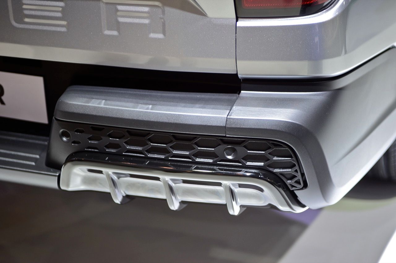 รูปลักษณ์ดุดัน กระจังหน้าดีไซน์รังผึ้ง พ ลิ้นหน้า (Splitter) โหลดต่ำลง ชุดสเกิร์ตด้านข้าง ส่วนท้ายรถติดตั้งกันชนหลังใหม่ ดิฟฟิวเซอร์หลังมอเตอร์สปอร์ต ฝาท้ายกระบะติดตั้งสัญลักษณ์ MS-RT สปอยเลอร์หลังแบบดักเทล สปอยเลอร์หลังคา ปรับแต่งด้วยการจำลองทางคอมพิวเตอร์เพื่อสร้างสมดุลทางอากาศพลศาสตร์ และช่วยเพิ่มเสถียรภาพ ล้ออัลลอยดีไซน์พิเศษลายไดมอนด์ คัท ขนาด 21 นิ้ว ยางแก้มเตี้ยขนาด 275/45 R21 เป็นล้อที่ใหญ่ที่สุดที่เคยมีมาใน Ranger ภายใต้ซุ้มล้อที่กว้างขึ้นทั้งหน้าและหลัง ทำให้ความกว้างโดยรวมของรถเพิ่มขึ้น 82 มิลลิเมตร ช่วงล่างของ Ranger MS-RT ปรับจูนอย่างพิถีพิถัน โช้คอัพคู่ใหม่ที่ปรับจูนแบบสปอร์ตให้มีความนุ่มหนึบ ลดความสูงของตัวรถลง 40 มิลลิเมตร เพิ่มความแม่นยำในการควบคุมรถและเพิ่มเสถียรภาพขณะเข้าโค้ง บันไดข้างพับเก็บอัตโนมัติไฟฟ้า เป็นอุปกรณ์มาตรฐาน