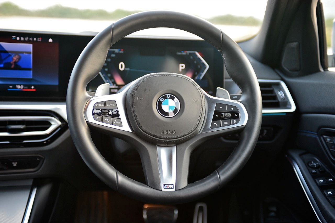 รุ่นยอดนิยม BMW Series-3 320d M Sport ยกระดับทั้งการขับขี่และรูปลักษณ์ ปรับโฉมห้องโดยสาร เติมทั้งบรรยากาศความสปอร์ต พวงมาลัยหนังสไตล์ M แบบฐานตัดขอบล่าง ชุดแต่งแผงคอนโซลหน้า Luxury แต่งด้วยผิวอะลูมิเนียมด้าน ปุ่มควบคุมระบบปรับอากาศใหม่ที่ใช้ปรับทิศทางลมได้ทั้งช่องแอร์กลาง ช่องฝั่งคนขับและฝั่งผู้โดยสาร 320d M Sport ติดตั้ง หน้าจอ iDrive เวอร์ชันล่าสุด ระบบสั่งการ QuickSelect ทำงานอยู่บนระบบปฏิบัติการ BMW Operating System 8.5 ฟังก์ชันมากมายบนหน้าจอหลักรูปแบบใหม่ นำหลักการการออกแบบหน้าจอของอุปกรณ์ดิจิทัลยุคใหม่ มาประยุกต์ให้ใช้งาน