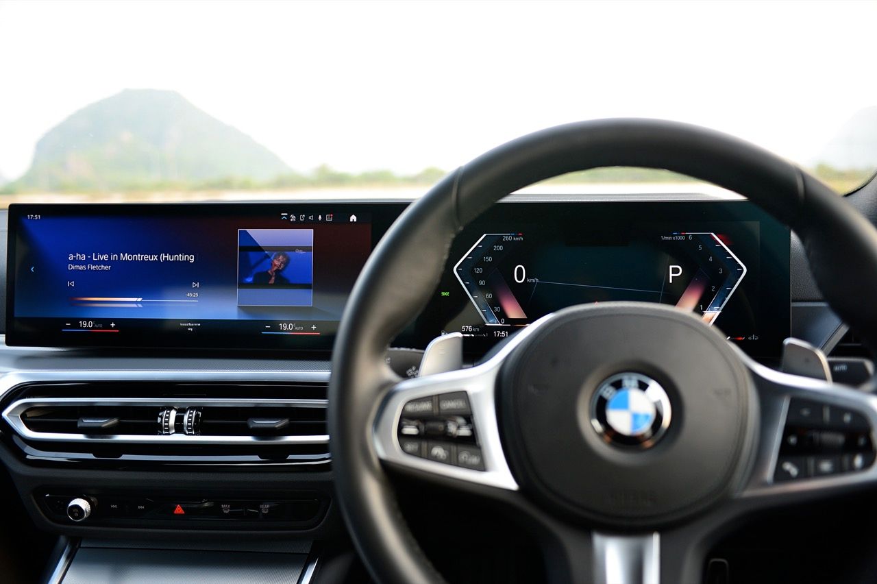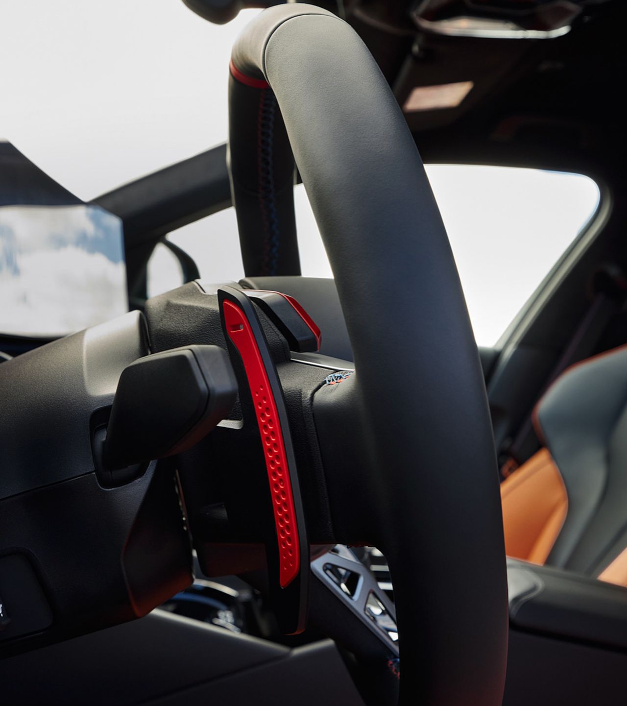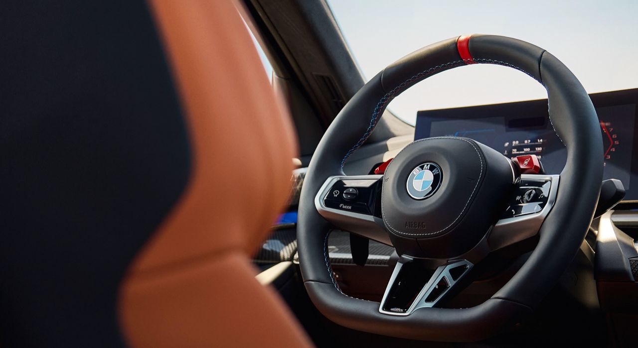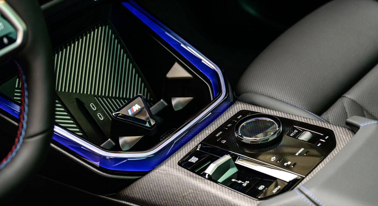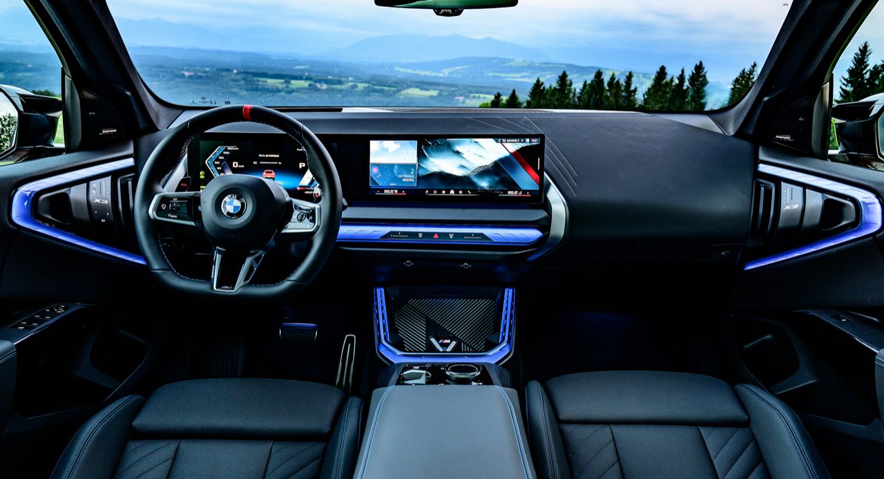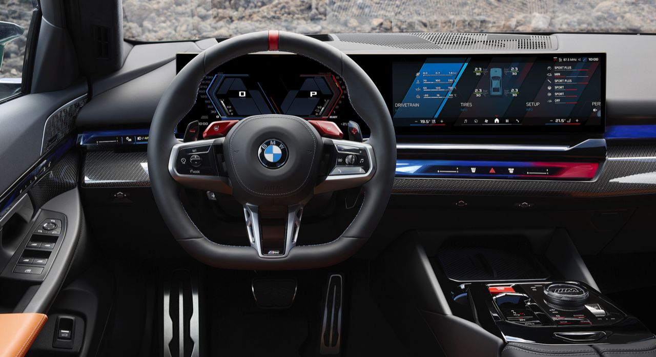 หน้าจอควบคุม BMW iDrive เวอร์ชันล่าสุด ฟังก์ชันการสั่งงานจากระบบปฏิบัติการ BMW Operation System 8.5 ใช้งานฟังก์ชันและบริการดิจิทัล หน้าจอโค้ง BMW Curved Display จะแสดงข้อมูลเกี่ยวกับสมรรถนะของรถในสไตล์เดียวกับรถยนต์ตระกูล M รุ่นอื่น ๆ จัดวางหน้าจอให้หันมาทางผู้ขับ เพื่อทำให้มองข้อมูลจากจอได้โดยไม่ต้องละสายตาจากท้องถนนข้างหน้า หน้าจอ Information Display ขนาด 12.3 นิ้วบริเวณหลังพวงมาลัย จอ Control Display ขนาด 14.9 นิ้ว ไฟ M Shift Lights ช่วยให้สัญญาณเปลี่ยนเกียร์ติดตั้งอยู่ด้านบนจอ Information Display ที่อยู่เหนือพื้นที่สำหรับการควบคุมฟังก์ชันต่าง ๆ ของตัวรถ ระดับการยึดเกาะถนน และระบบขับเคลื่อนสี่ล้อ M xDrive ที่ปรากฏบนหน้าจอด้านล่าง