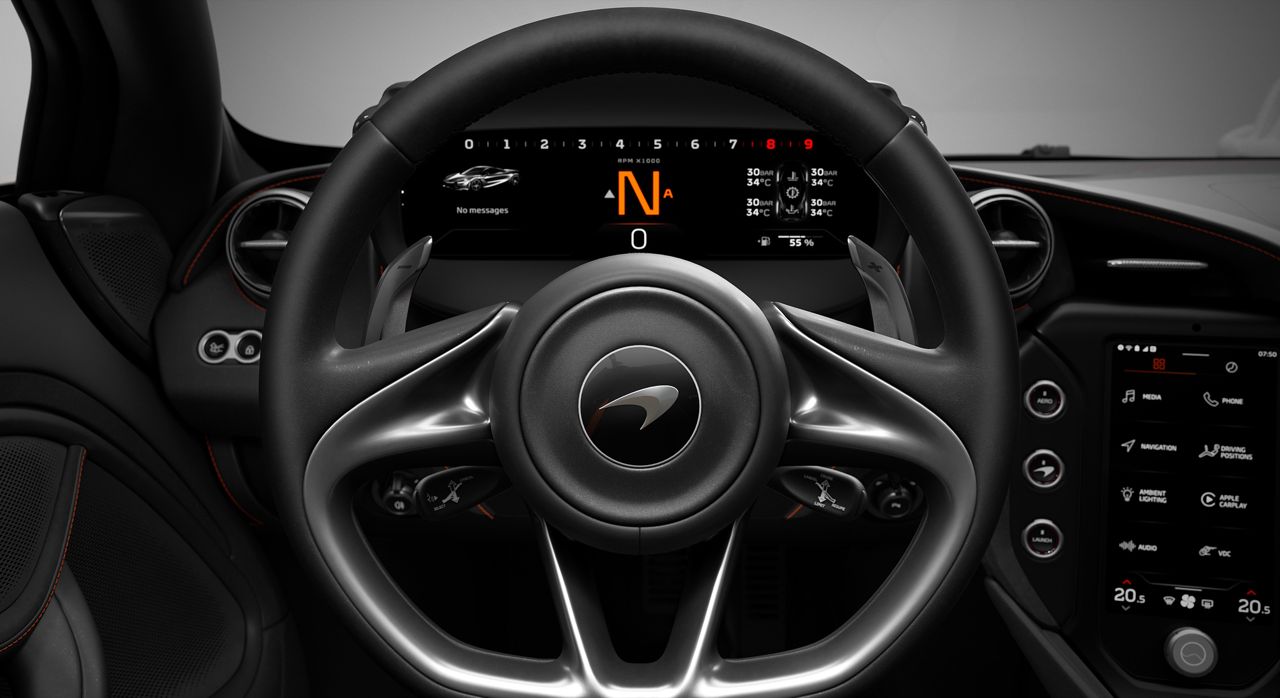 การออกแบบภายในได้รับการปรับแต่งใหม่ทั้งหมดโดยให้ความสำคัญกับคนขับเพื่อความเป็นหนึ่งเดียวกับตัวรถ ชูนวัตกรรมใหม่ จอควบคุม Active Dynamic Settings ติดตั้งตรงคอพวงมาลัยรถ และสวิตช์แบบคันโยก ทำให้คนขับสามารถปรับโหมดช่วงล่างและระบบส่งกำลังได้โดยไม่ต้องละมือจากพวงมาลัย McLAREN 750S นำเสนอ McLaren Control Launcher (MCL) เทคโนโลยีใหม่ล่าสุด เปิดตัวเป็นครั้งแรก อำนวยความสะดวกให้คนขับสามารถบันทึกโหมดการขับ ตามความต้องการเฉพาะบุคคล ผ่านปุ่ม MCL รูป Speedmark ซึ่งใช้ควบคุมได้หลากหลายฟังก์ชัน ไม่ว่าจะเป็นการควบคุมอากาศพลศาสตร์ การตั้งค่าระบบส่งกำลัง และระบบเกียร์ Apple CarPlay® ติดตั้งเป็นอุปกรณ์มาตรฐานในรุ่นนี้ ที่ชาร์จโทรศัพท์มือถือหรืออุปกรณ์อิเล็กทรอนิกส์ แบบ USB-C และ USB-A หน้าจอ Central Information Screen แบบใหม่ กล้องมองหลังและกล้องมองรอบรถอัปเกรดให้มีความละเอียดและภาพคมชัด ระบบ Vehicle-Lift ปุ่มเดียว สามารถยกด้านหน้าของรถใน 4 วินาที ซึ่งเร็วกว่ารถ McLaren รุ่นอื่น และเร็วกว่าแมคลาเรน 720S (ที่ใช้เวลา 10 วินาที)