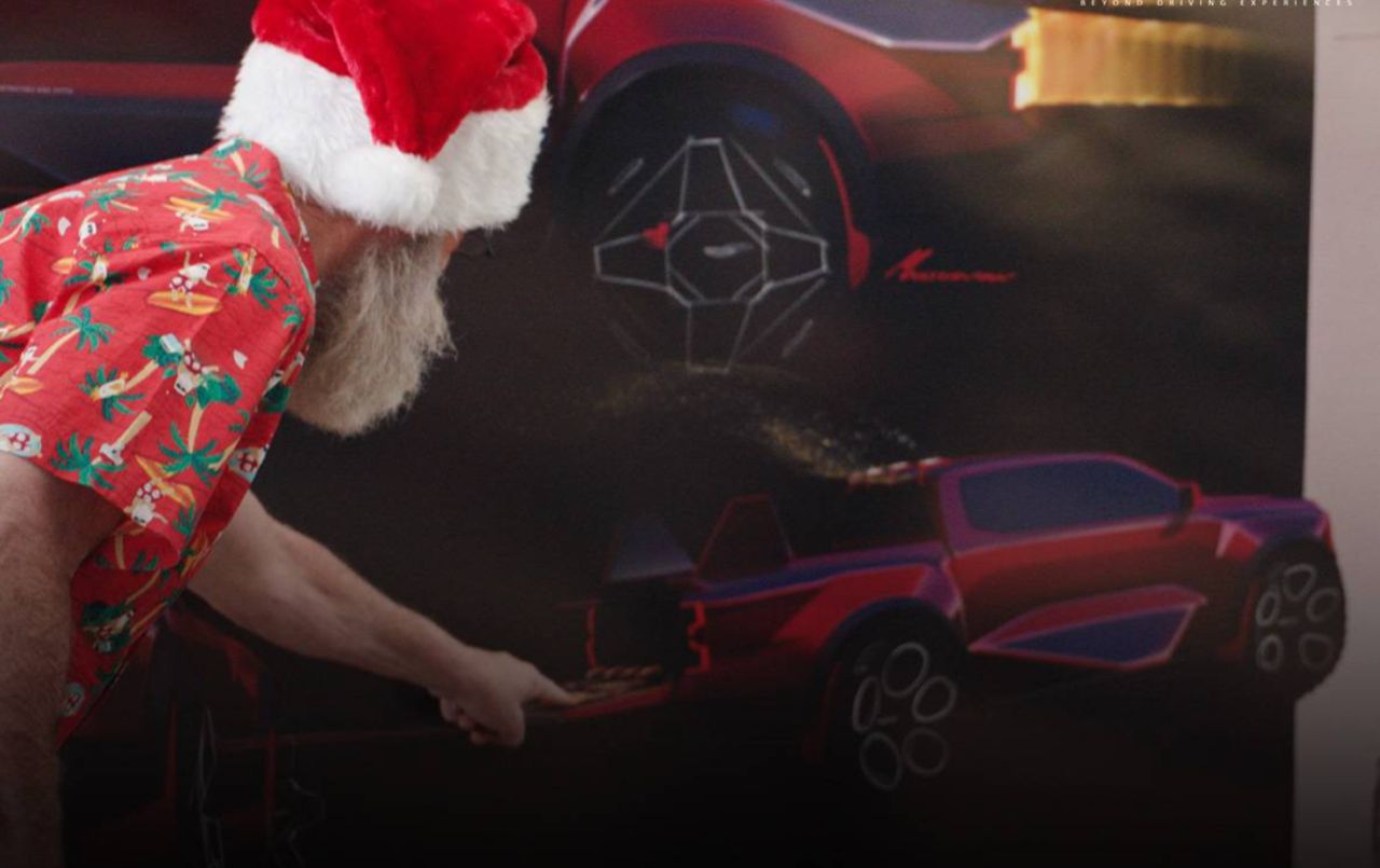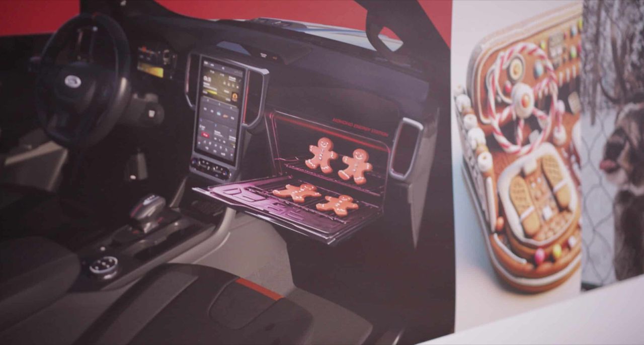 เตาบาร์บีคิวท้ายรถ: พื้นที่กระบะท้ายถูกใช้ให้เป็นประโยชน์ จัดเต็มด้วยเตาบาร์บีคิวอัจฉริยะ ล้างทำความสะอาดได้เองอัตโนมัติ เพื่อให้ซานต้าได้พักผ่อนหลังแจกของขวัญทั่วโลก ด้วยการปิ้งย่างที่บ้านพักตากอากาศในบอนนี่ดูน เมืองริมทะเลสาบสุดโปรดที่เขาชอบไปตกปลา