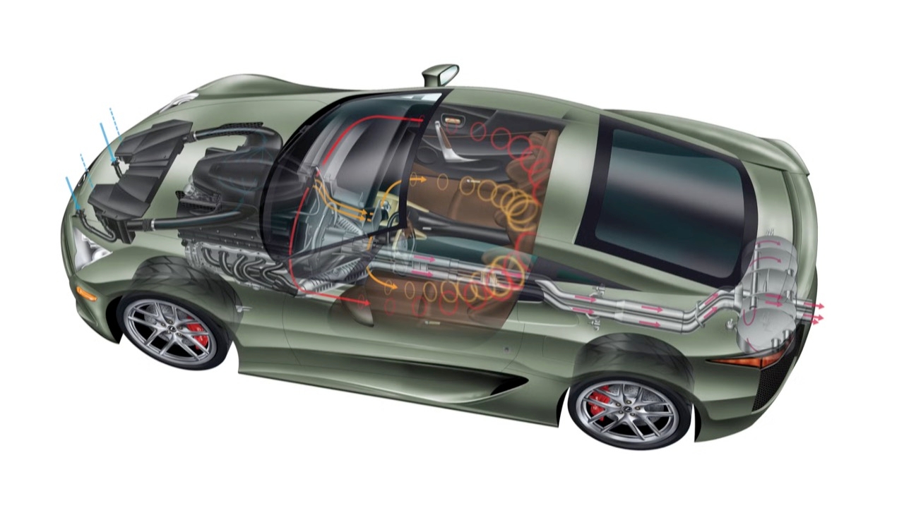 LFA ผสมผสานเทคโนโลยีที่ล้ำสมัยที่สุดในยุคนั้นเข้าด้วยกัน เป็นเครื่องหมายของการแสวงหาความสุขในการขับขี่ขั้นสูงสุดที่ออกแบบมาเพื่อสร้างความตื่นเต้นและกระตุ้นประสาทสัมผัส ในฐานะส่วนหนึ่งของความท้าทายในการพัฒนาที่ไม่เคยมีมาก่อนนี้ วิศวกรของ Lexus ได้พยายามอย่างเต็มที่เพื่อให้ได้เสียงเครื่องยนต์ที่ไพเราะ โดยได้รับความช่วยเหลือจากผู้เชี่ยวชาญด้านเสียงของ Yamaha ใน LFA ผู้ขับเปรียบเสมือนวาทยากรที่ใช้คันเร่งเพื่อประสานเสียงอันไพเราะ ระหว่างท่อไอเสียด้านหลังและเสียงไอดีที่ด้านหน้าของรถ