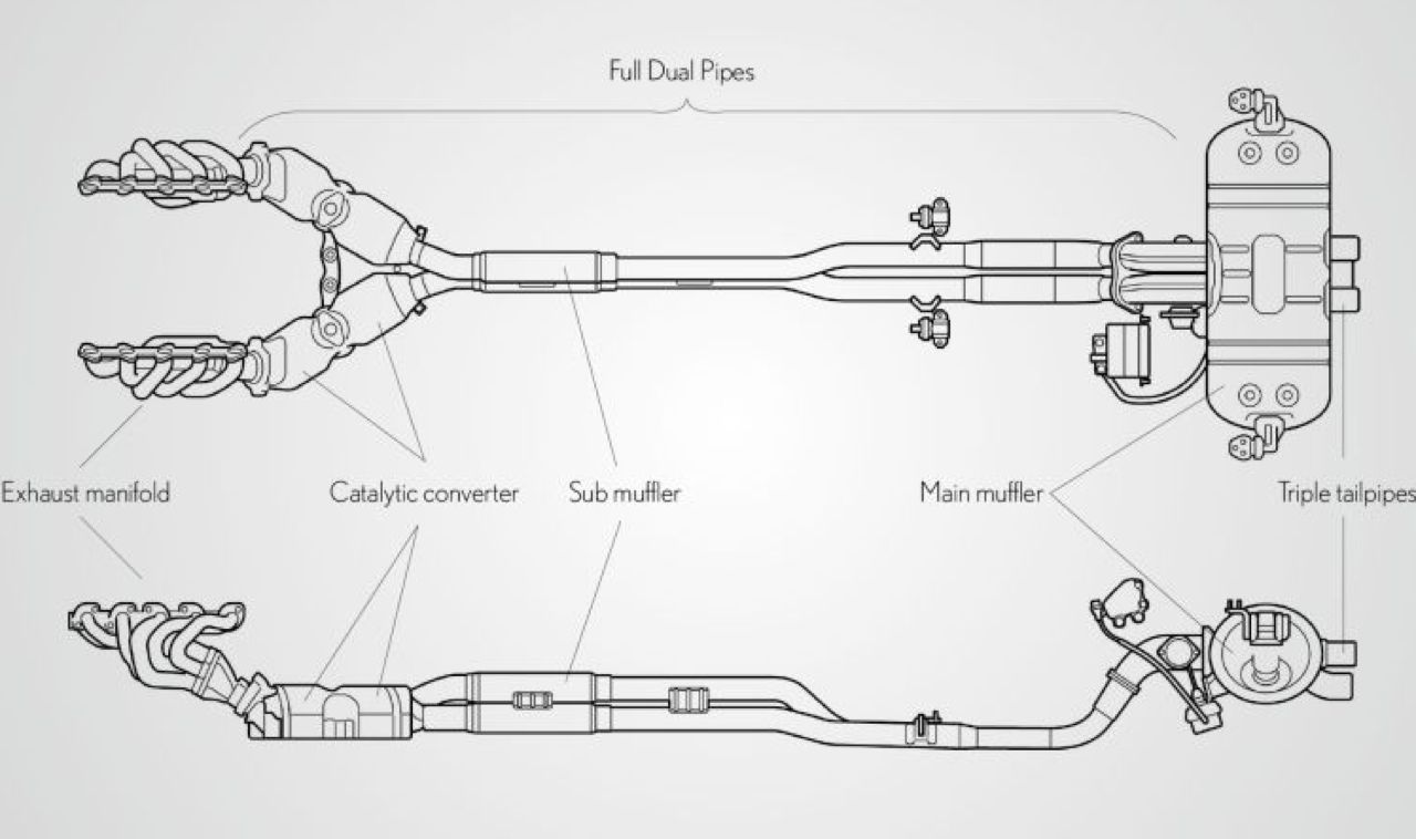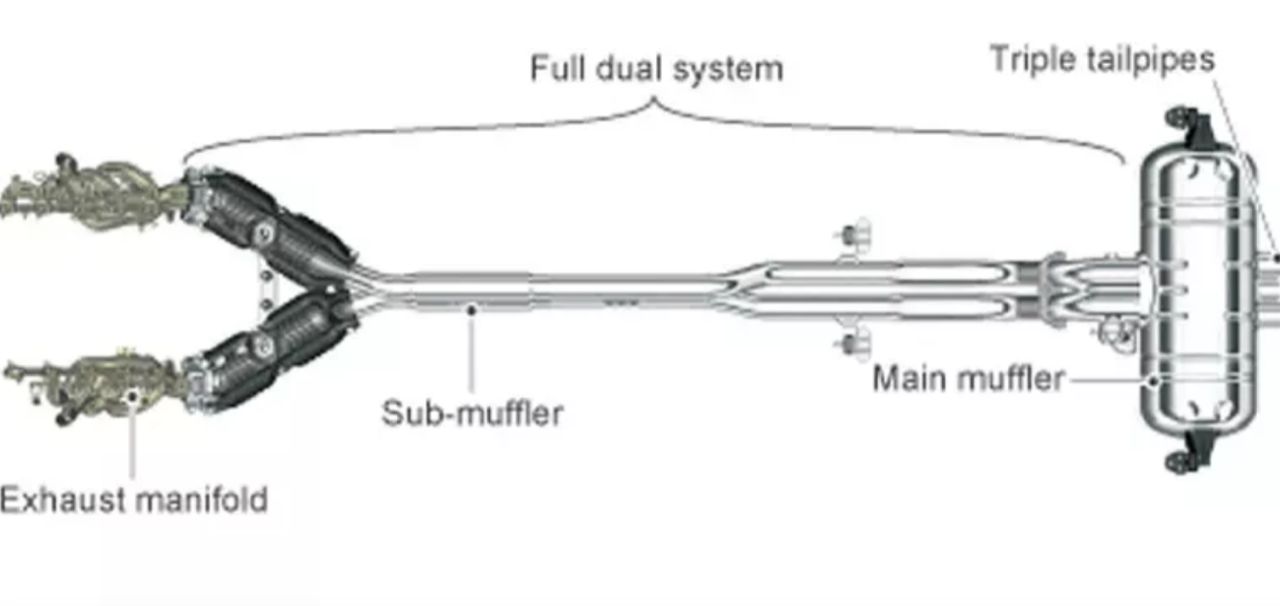 ระบบไอเสียที่มีความยาวเท่ากัน พร้อมโครงสร้างท่อสามท่ออันเป็นเอกลักษณ์ ให้เสียงประสานที่ชัดใสราวกับแก้วคริสตัล หม้อพักไอเสียที่ส่งเสียงเบสทุ้มลึกในรอบเครื่องต่ำ และเสียงคำรามอย่างเกรี้ยวกราดของเครื่องยนต์ V10 ที่รอบเครื่องสูง ระบบไอดีที่มีความยาวเท่ากัน ให้เสียงสะท้อนที่ชัดเจนจากไอดีที่ดังสนั่น และกลไกถ่ายโอนเสียงที่นำเสียงไอดีเข้าสู่ตัวรถ.