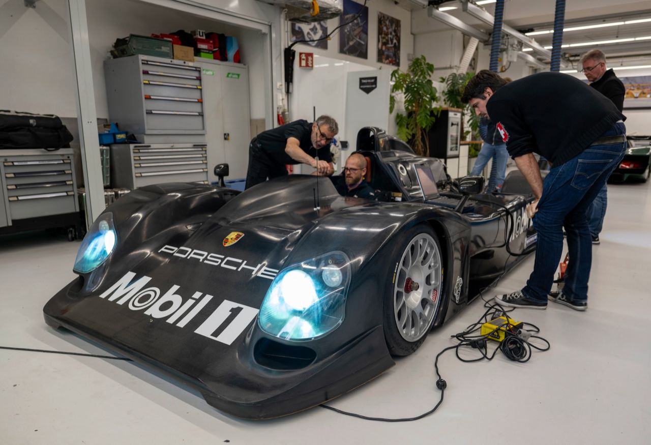 เพื่อนร่วมงานของเบอร์เกอร์ (Burger) ที่ไวซาค (Weissach) ทรอกอตต์ เบรชท์ (Traugott Brecht) เริ่มต้นถอดชิ้นส่วนตัวถังของรถแข่งสีดำออกทีละนิด “เราทำงานอย่างระมัดระวังจนถึงเครื่องยนต์ จนกระทั่งวันหนึ่งเราตัดสินใจที่จะเริ่มสตาร์ทเครื่องเป็นครั้งแรก” เบอร์เกอร์ (Burger) จำได้ถึงช่วงเวลานั้น การสตาร์ทเครื่องครั้งแรกนั้นน่าตื่นเต้นมาก และเครื่องยนต์ทั้ง 10 สูบทำงานได้อย่างสมบูรณ์แบบ จากนั้นทีมงานจึงเริ่มทำงานกับระบบเกียร์ ซึ่งเป็นความท้าทายครั้งใหญ่ แม้ในปี 1999 “การทำให้ระบบเกียร์กลับมาทำงานได้อีกครั้งเป็นหนึ่งในงานที่ยากที่สุดในช่วงหลายเดือนที่ผ่านมา” เบอร์เกอร์ (Burger) อธิบาย พร้อมกับชี้ไปที่พวงมาลัยเดิมและแป้นเปลี่ยนเกียร์
