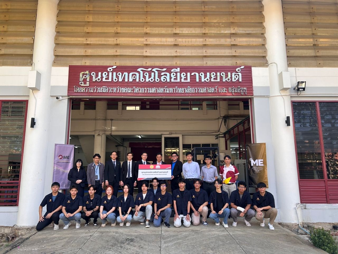 มูลนิธิกลุ่มอีซูซุ และสถาบันฝึกอบรมตรีเพชรอีซูซุ โดยคุณโสภณ ตั้งฐานทรัพย์ ผู้ช่วยผู้จัดการทั่วไป มอบชุดอุปกรณ์การฝึกด้านยานยนต์ มูลค่ารวม 200,000 บาท ให้แก่ ศูนย์เทคโนโลยียานยนต์ โดยความร่วมมือระหว่างคณะวิศวกรรมศาสตร์ มหาวิทยาลัยธรรมศาสตร์ และกลุ่มอีซูซุ โดยมีวัตถุประสงค์เพื่อสนับสนุนการพัฒนาบุคลากรด้านวิศวกรรมยานยนต์ของประเทศไทย โดยมี ศ.ดร.สัญญา มิตรเอม คณบดีคณะวิศวกรรมศาสตร์ เป็นผู้รับมอบ
