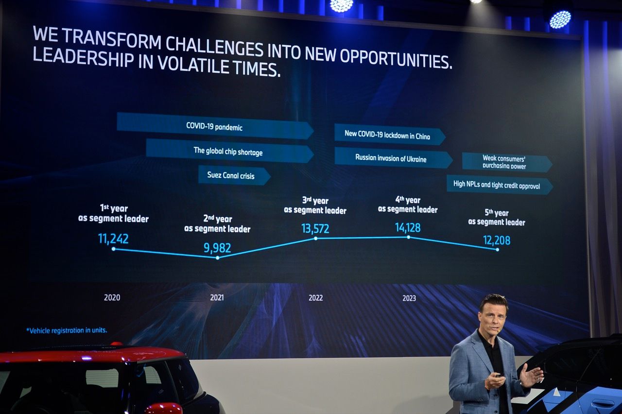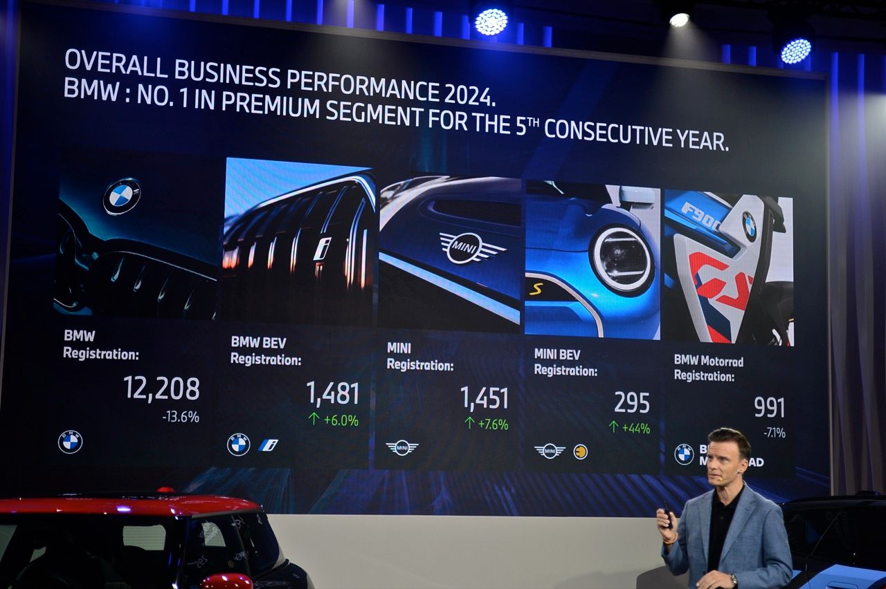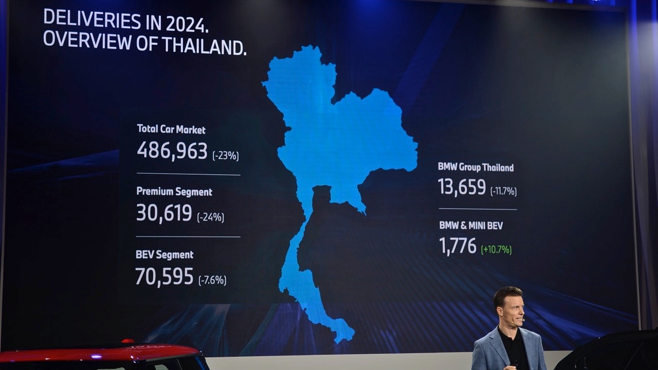 ปีที่ผ่านมา ท่ามกลางตลาดรถยนต์เซกเมนต์พรีเมียมในประเทศไทยที่ต้องเผชิญกับสภาพเศรษฐกิจที่ตกต่ำ จากปัญหาหนี้ครัวเรือน ความไม่แน่นอนและไม่เชื่อมั่นในด้านการเมือง กฏระเบียบที่เข้มงวดของสถาบันทางการเงินในช่วงเศรษฐกิจฝืดเคือง กลายเป็นความท้าทายในหลายด้าน BMW และ MINI ทำยอดส่งมอบรถยนต์รวมกันอยู่ที่ 13,659 คันในปี 2567 มีส่วนแบ่งตลาดที่ 45% ทั้งนี้ ยอดจดทะเบียนรถยนต์ใหม่ จำนวน 12,208 คันของ BMW ในปีที่แล้ว ทำให้แบรนด์ยังคงรักษาตำแหน่งผู้นำยอดจดทะเบียนรถยนต์ระดับพรีเมียมในประเทศไทยได้เป็นปีที่ 5 ส่วนการเปิดตัวรุ่นใหม่ในตระกูล New MINI Family ส่งผลให้ MINI มียอดส่งมอบรถเพิ่มสูงขึ้น 7.6% แต่โดยภาพรวม ยอดขายที่หล่นลงมา 11.7 % ถือว่าไม่มากนักเมื่อเทียบกับแบรนด์หรูอื่นๆ จากความผันผวนของเศรษฐกิจไทยที่ยังคงโงหัวไม่ขึ้นและยังไม่มีวี่แววว่าจะดีขึ้นเมื่อไหร่?