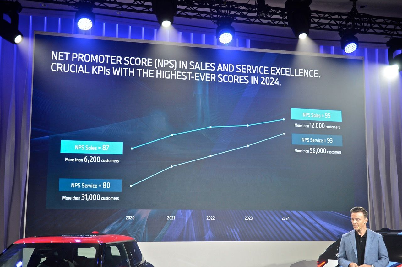 ผลการสำรวจความพึงพอใจของลูกค้าในปี 2567 เผยให้เห็นว่า BMW Group Thailand ทำผลงานได้ดีขึ้น ทั้งในด้านการขายและการบริการ ด้วยคะแนน Net Promoter Score (NPS) ด้านการขายที่ 95 คะแนน (เพิ่มขึ้น 1 คะแนนจากปี 2566) และด้านการบริการที่ 93 คะแนน (เพิ่มขึ้น 2 คะแนนจากปี 2566) โดยนับเป็นสถิติสูงสุดสำหรับทั้งสองด้าน