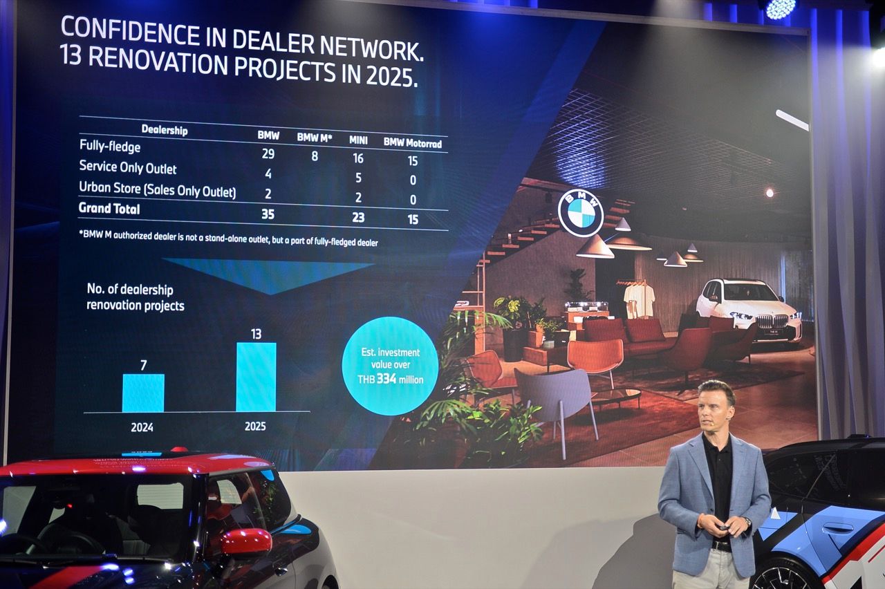ปี 2568 BMW Group Thailand ใช้ แนวคิด “Retail Next” การผสานนวัตกรรมดิจิทัลและงานออกแบบที่ยึดลูกค้าเป็นศูนย์กลาง จะขยายตัวครอบคลุมโชว์รูมและศูนย์บริการกว้างขวางขึ้นในปีนี้ ภายใต้เป้าหมายที่จะเพิ่มอัตราส่วนของโชว์รูมแบบ Retail Next จาก 60% เป็น 100% ทั่วประเทศภายในสองปีข้างหน้า ดังจะเห็นได้จากการเปิดตัวโชว์รูม เพอร์ฟอร์แมนซ์ มอเตอร์ส อยุธยา ในช่วงปลายปีที่แล้ว ด้วยพื้นที่โชว์รูมและศูนย์บริการรวม 8,800 ตารางเมตรที่ครบครันด้วยประสบการณ์สุดพิเศษสำหรับลูกค้า BMW และ MINI และงานออกแบบที่สะท้อนมรดกทางวัฒนธรรมของอยุธยา