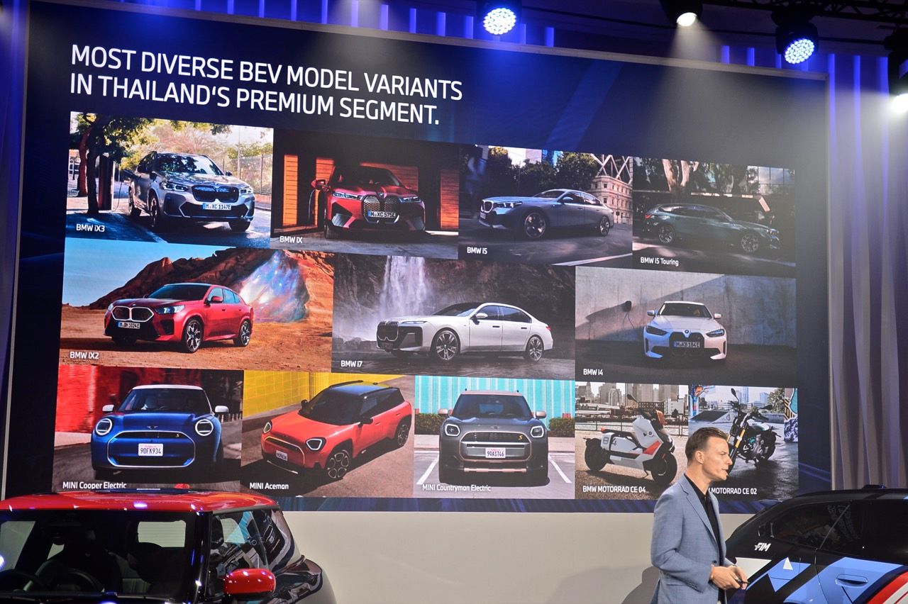 ปี 2567 การจำหน่ายยานยนต์ไฟฟ้าของ BMW ดำเนินอย่างต่อเนื่อง ด้วยไลน์รถยนต์ไฟฟ้ารวมทั้งสิ้น 6 รุ่นในประเทศไทย หลังจากเปิดตัว BMW i5 และ iX2 เข้ามาเสริม iX3, i4, i7 และ iX ทั้งนี้ ส่วนแบ่งตลาดรถยนต์ไฟฟ้าระดับพรีเมียมของ BMW เติบโตอย่างก้าวกระโดดในปีที่แล้ว จาก 13.5% ในปี 2566 มาเป็น 22.6% ในปี 2567 ผลักดันให้ส่วนแบ่งตลาดพรีเมียมของ BMW เพิ่มสูงขึ้นเป็นสถิติใหม่ที่ 39.9% ส่วนการเปิดตัว MINI ในเจเนอเรชันใหม่ New MINI Family ในปี ที่ผ่านมา เปิดโอกาสให้แฟน ๆ ชาวไทยได้เป็นเจ้าของ MINI ไฟฟ้าโฉมใหม่ได้ ทั้งในรุ่น Cooper Countryman และ น้องใหม่ล่าสุดอย่าง ACEMan SE ทำให้ยอดส่งมอบรถยนต์ไฟฟ้าของ MINI เติบโตขึ้น 44% จากปีก่อนหน้า