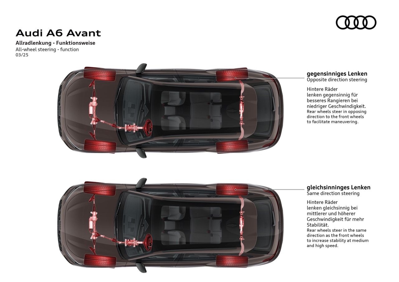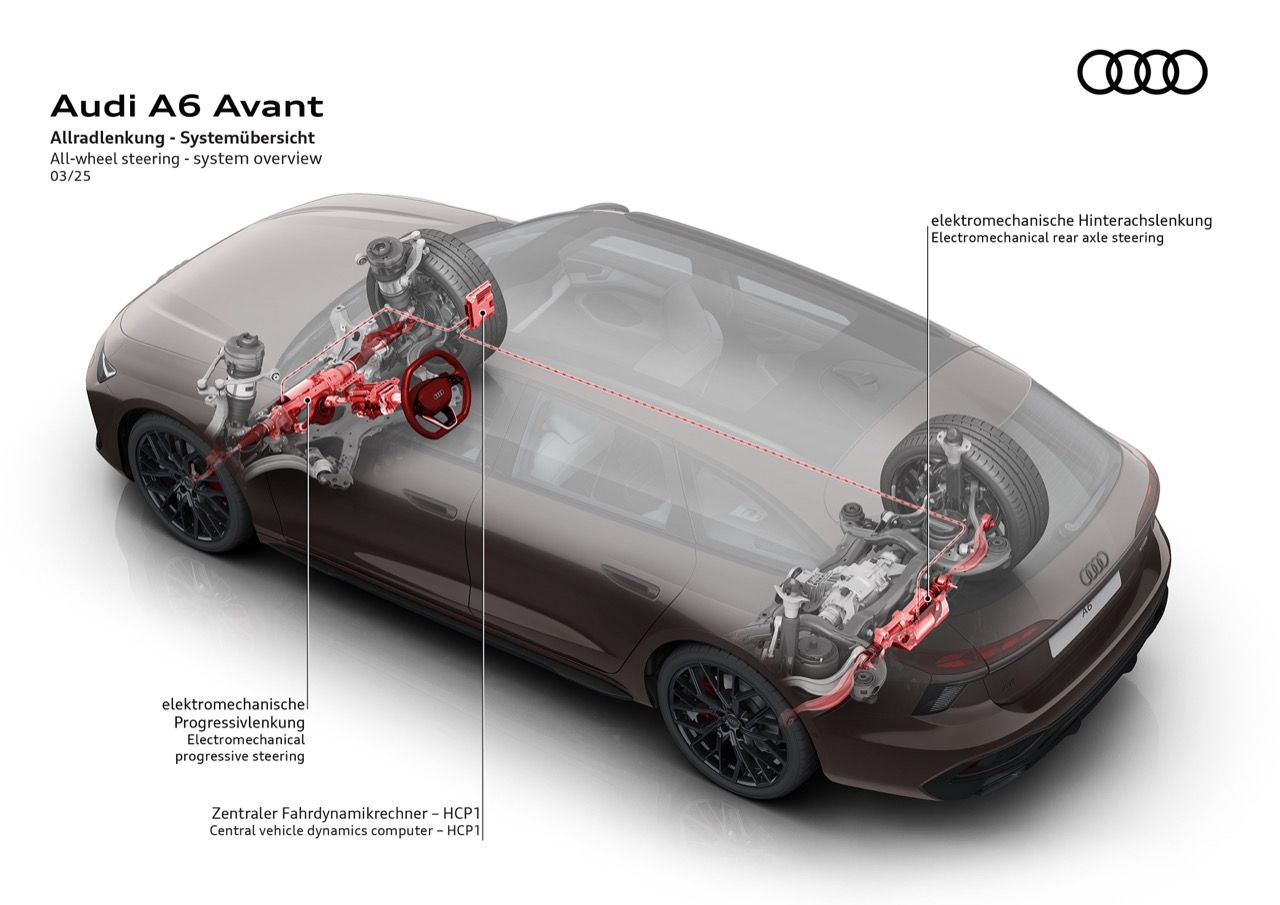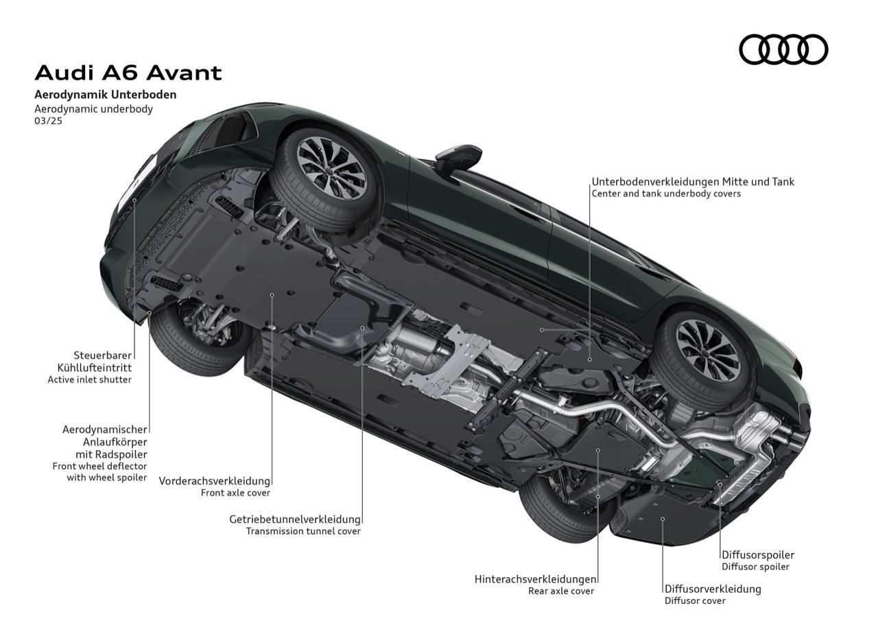 Audi ให้ความชัดเจนเกี่ยวกับข้อมูลของ A6 Avant โดยอ้างว่าเป็นรถที่ มอบการเดินทางชั้นหนึ่งที่ไม่มีใครเทียบได้ในรถคลาสเดียวกัน ซึ่งคำพูดนี้ฟังดูเหมือนเป็นการโฆษณาเกินจริง การใส่อุปกรณ์บางอย่างเพื่อยกระดับการขับเคลื่อน ด้วยคุณสมบัติที่เน้นความหรูหราและสะดวกสบาย กลายเป็นสิ่งสำคัญของรถหรู A6 Avant ใหม่ ใช้แพลตฟอร์ม PPC (Premium Platform Combustion) ซึ่งเปิดตัวครั้งแรกในรถยนต์ตระกูล A5 เมื่อปีที่แล้ว (2024) มาพร้อมระบบกันสะเทือนถุงลมแบบปรับได้ซึ่งเสริมด้วยการปรับแต่งการทำงานของ Air Suspension เพื่อส่งถ่ายฟิลลิ่งแบบสปอร์ตให้เข้ากับความสบายขณะเดินทาง การปรับความสูงของตัวถังและการดูดซับแรงกระแทกที่ได้รับการปรับแต่งใหม่ นอกจากเทคโนโลยีช่วงล่าง “ล้ำสมัย” แล้ว แพลตฟอร์ม PPC ยังสามารถติดตั้งระบบช่วยเลี้ยวล้อหลังและเฟืองท้ายแบบ quattro sport (ในรุ่น AWD) ได้อีกด้วย