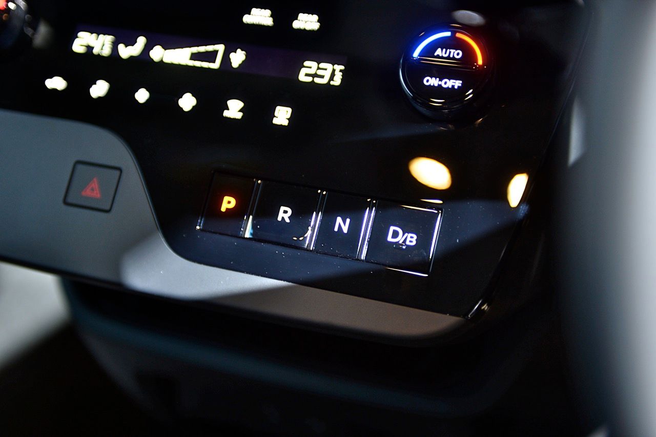 ปุ่มกดสำหรับเลือกตำแหน่งเกียร์ เปลี่ยนเกียร์ด้วยการกดปุ่มแทนการโยกคันเกียร์ ดีไซน์เรียบง่ายดูสะอาดตา ใช้งานได้ง่าย มีไฟเรืองแสงช่วยให้เห็นชัดเจน รวมถึง N Hold Mode สามารถเข็นรถได้ง่ายเมื่อจอดซ้อนคัน เบรกมือไฟฟ้า พร้อม Auto Brake Hold โหมดหรือรูปแบบการขับขี่ 3 โหมดหลัก ได้แก่ Standard Mode ทั้งความแรงและประหยัด Sport Mode เน้นการตอบสนองรวดเร็ว และ Eco Mode การประหยัดพลังงาน มี ฟังก์ชัน B ที่เพิ่มแรงหน่วง หรือ ช่วยเบรก และเพิ่มการฟื้นฟูพลังงาน หรือ Regenerative รวมถึง EV Mode สามารถปรับเปลี่ยนให้รถขับเคลื่อนด้วยพลังงานไฟฟ้าที่เหลือภายในแบตเตอรี่ โดยเครื่องยนต์จะไม่ทำงานจนกระทั่งแบตเตอรี่อยู่ในระดับต่ำ