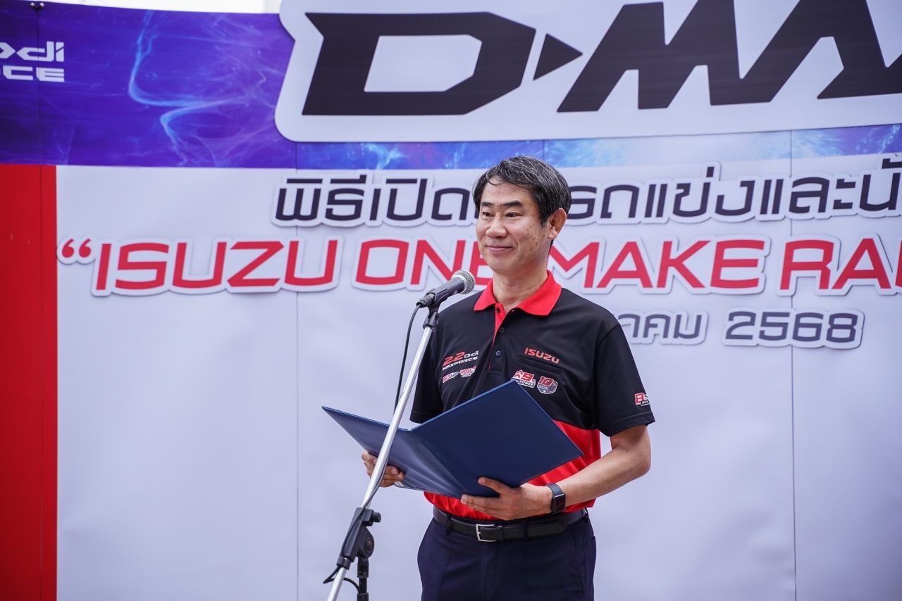 มร. ทาคาชิ ฮาตะ กรรมการผู้จัดการ บริษัท ตรีเพชรอีซูซุเซลส์ จำกัด กล่าวว่า การแข่งขัน ISUZU ONE MAKE RACE เป็นการแข่งขันรถยนต์ทางเรียบที่ประสบความสำเร็จมาอย่างต่อเนื่อง โดยเราได้จัดการแข่งขันกันมายาวนาน และต่อเนื่องเป็นปีที่ 16