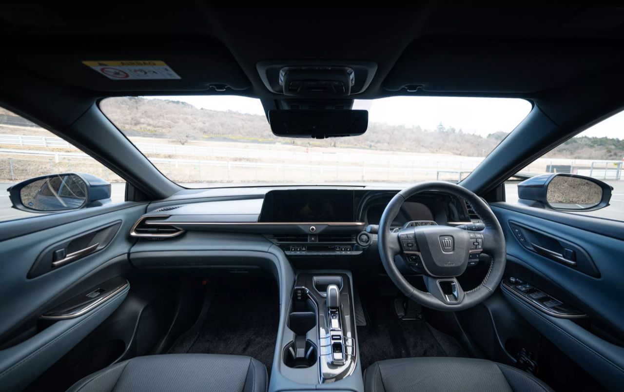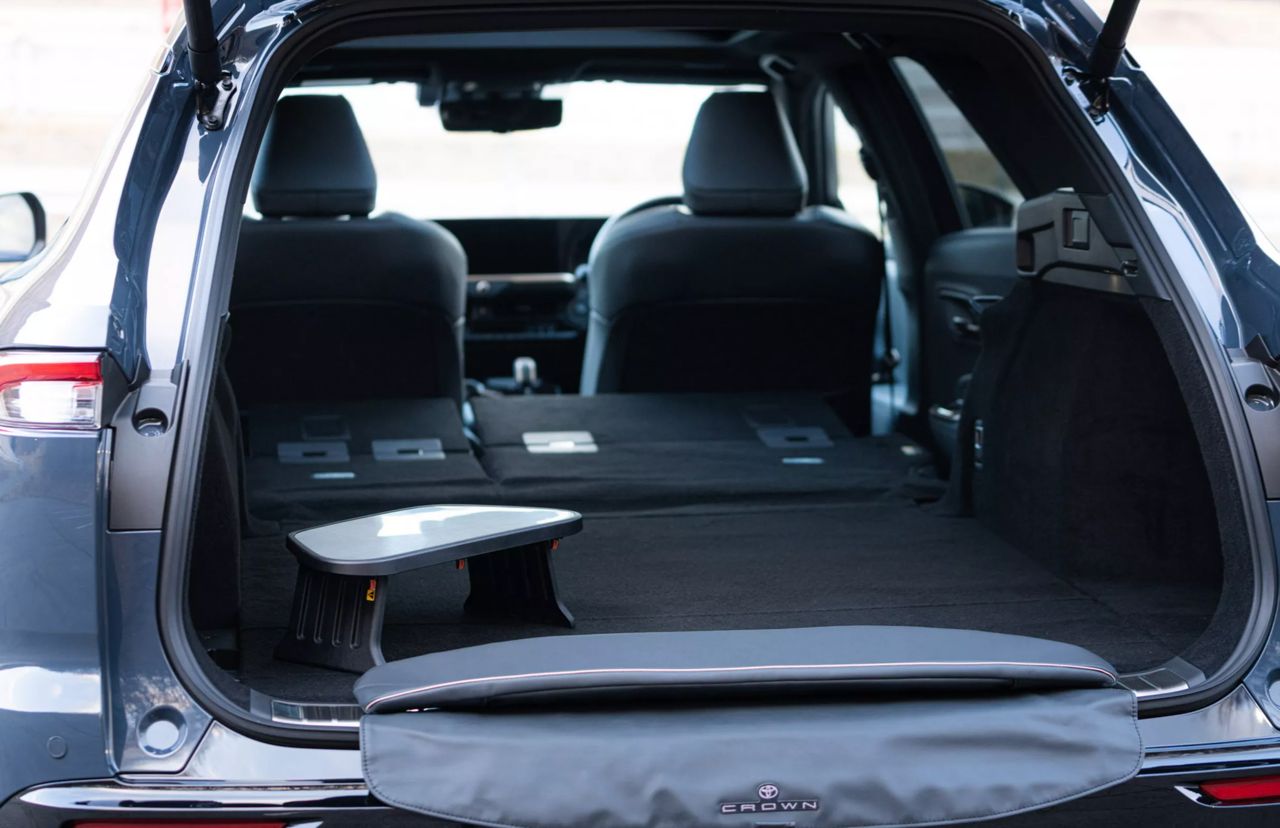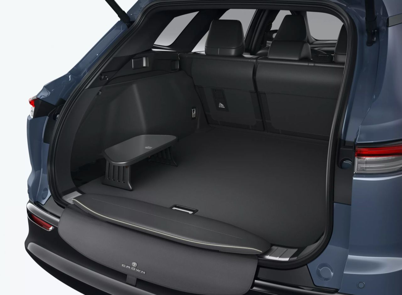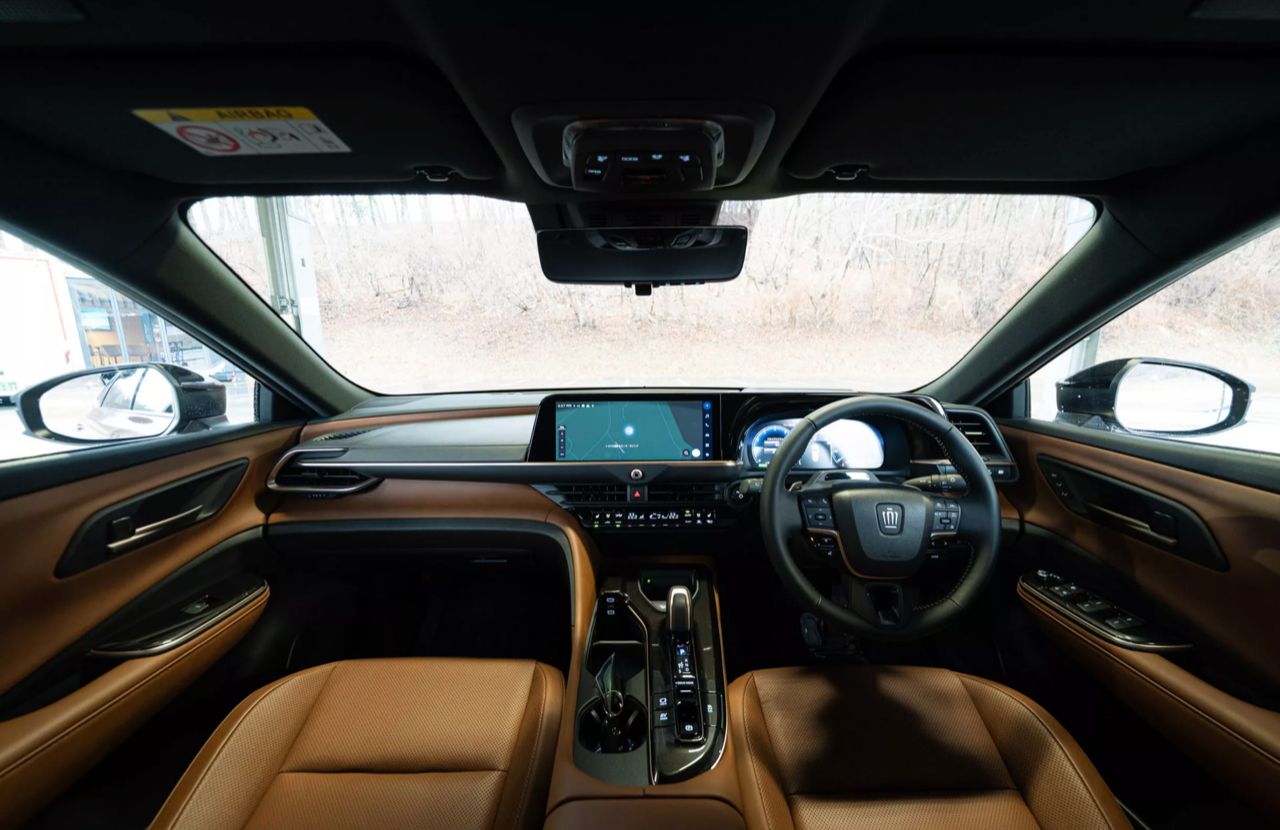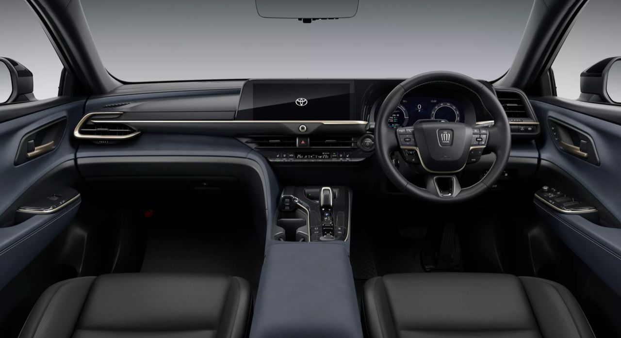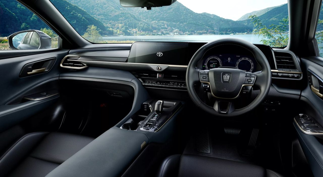 ภายใน พบกับห้องโดยสารแบบดิจิทัลที่คุ้นเคย วัสดุตกแต่งคุณภาพดี เบาะปรับไฟฟ้าพร้อมหน่วยความจำสองตำแหน่ง จอแสดงผลขนาด 12.3 นิ้ว ให้มาสองจอ พวงมาลัยประดับตราสัญลักษณ์ Crown เบาะโดยสารแบบ 5 ที่นั่ง พื้นที่เก็บสัมภาระ 570 ลิตร เมื่อพับเบาะหลังให้แบนราบลงไป ความจุห้องเก็บสัมภาระท้ายจะเพิ่มเป็น 1,470 ลิตร
