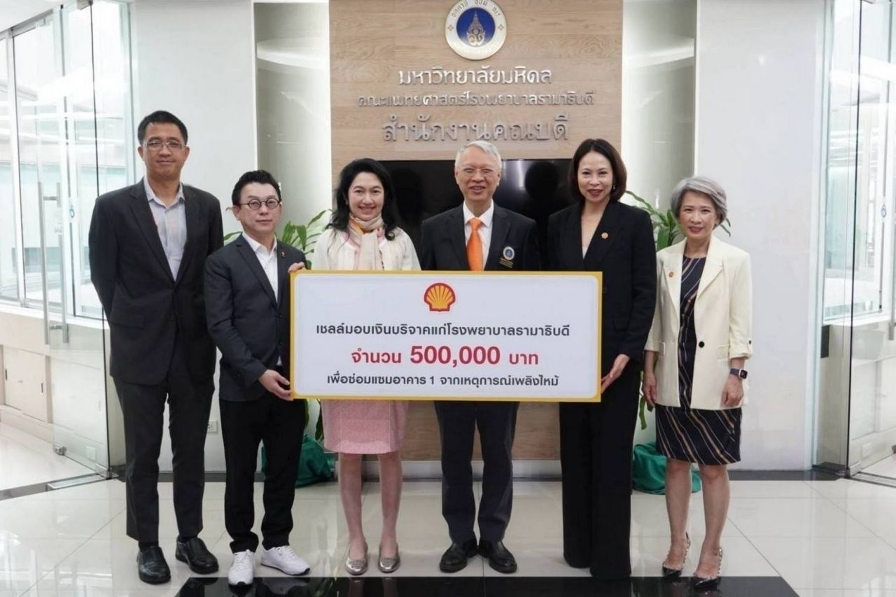 พร้อมสนับสนุน : บริษัท เชลล์แห่งประเทศไทย จำกัด เดินหน้าขับเคลื่อนกลยุทธ์ Powering Progress ด้วยการมอบเงินสนับสนุนจำนวน 500,000 บาท แก่มูลนิธิรามาธิบดี ร่วมสมทบทุนซ่อมแซมอาคารหลักของโรงพยาบาลรามาธิบดี ที่ได้รับความเสียหายจากเหตุเพลิงไหม้เมื่อไม่นานมานี้ เพื่อเร่งคืนสภาพให้สามารถกลับมาใช้งานได้ตามปกติโดยเร็ว ตอกย้ำความมุ่งมั่นของเชลล์ในการร่วมเป็นพลังขับเคลื่อนสังคมไทย และยืนหยัดเคียงข้างพันธมิตรเชิงกลยุทธ์ในทุกสถานการณ์