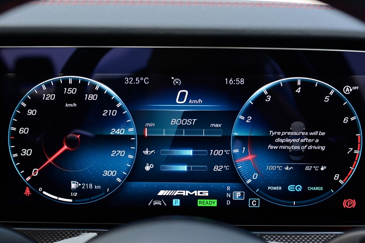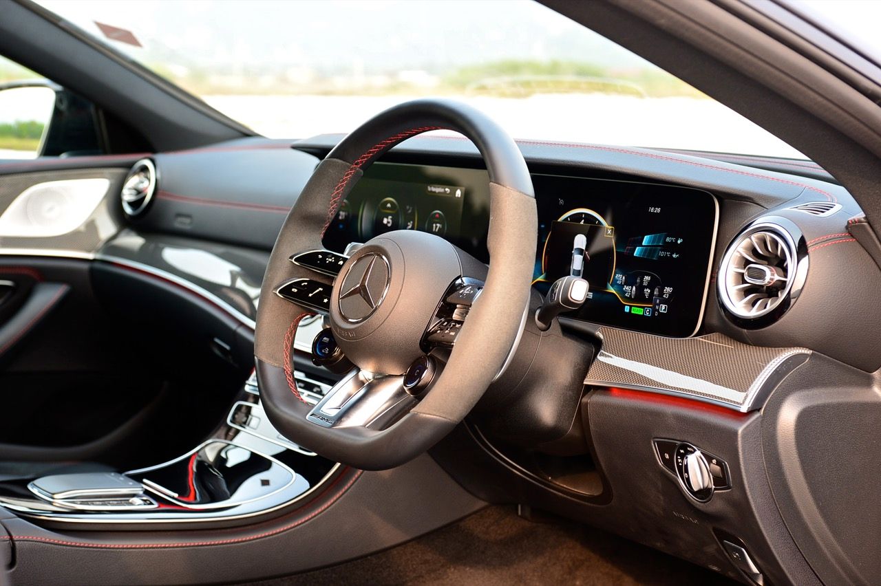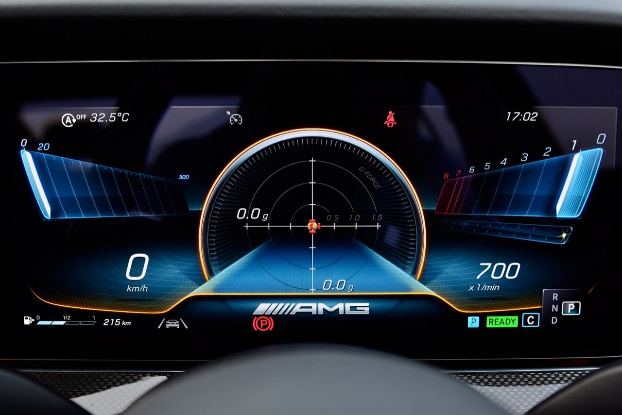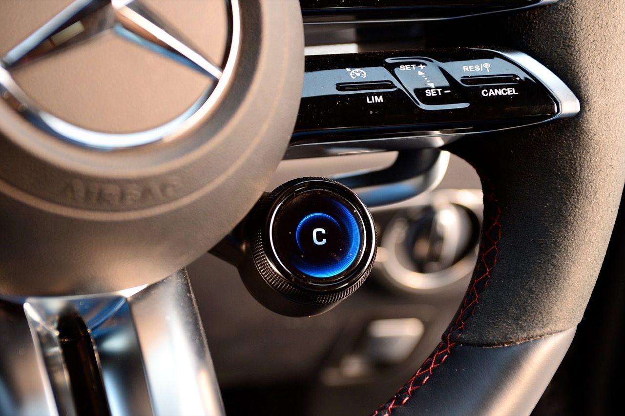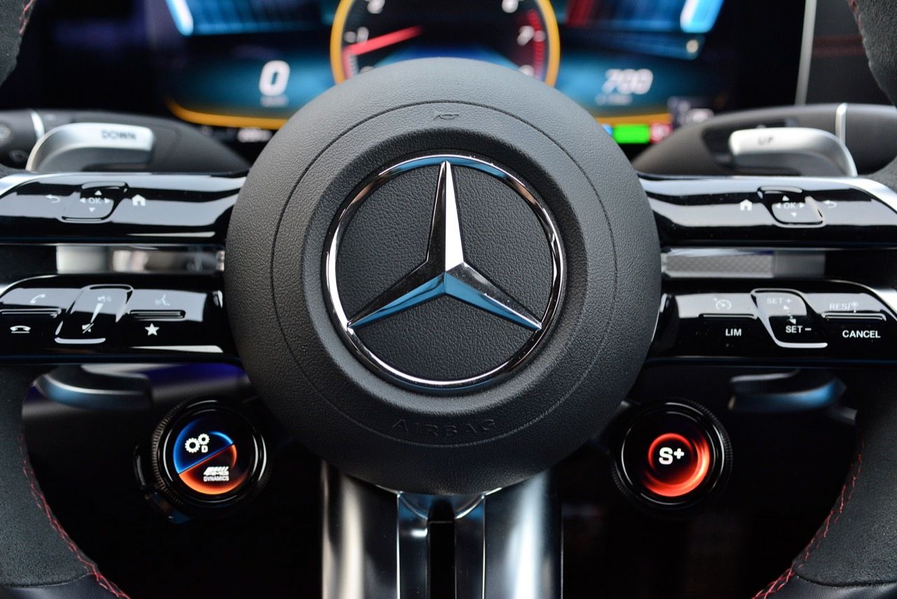 หน้าจอแสดงโหมดการขับขี่บนพวงมาลัย 2 จอพร้อมปุ่มควบคุม แบบ AMG steering wheel buttons