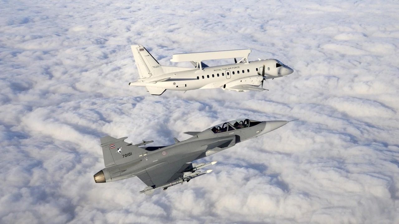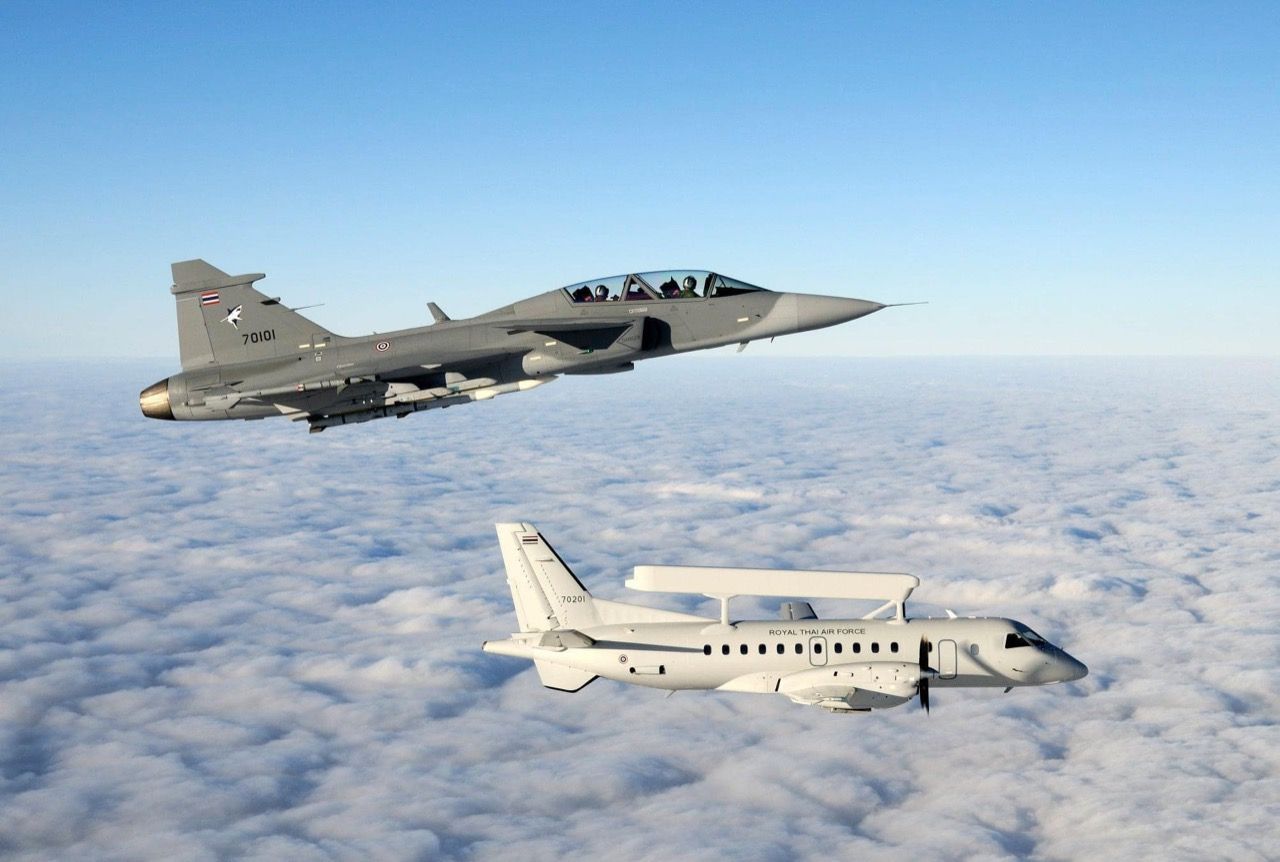 SAAB 340 AEW Erieye เครื่องบินควบคุมและแจ้งเตือนทางภัยอากาศรุ่นล่าสุดของทัพฟ้าไทยคืออากาศยานสองเครื่องยนต์ทำหน้าที่เหมือนเรดาร์ลอยฟ้า และทำให้ไทย...กลายเป็นประเทศที่สองต่อจากสิงคโปร์ ในภูมิภาคนี้ และเป็นประเทศที่ 22 ของโลกที่มีเครื่องบินตรวจการณ์ชนิดพิเศษนี้เข้าประจำการ...(ตั้งแต่ปี พศ. 2554)