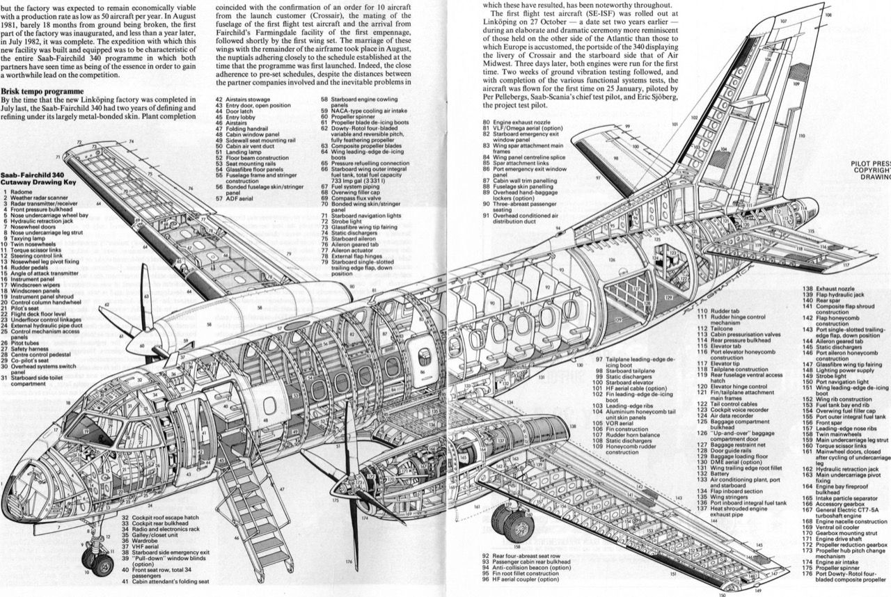 ทศวรรษที่ 80 บริษัทผลิตอากาศยานของสวีเดน Saab ได้ร่วมมือกับบริษัท Fairchild Aircraft ของสหรัฐอเมริกาทำการพัฒนาเครื่องบินโดยสารขนาดกลางแบบใหม่ เพื่อเข้ามาแทนที่เครื่องบินโดยสารแบบเก่าที่มีเพียง 30-36 ที่นั่งสามารถบินเดินทางภายในภูมิภาคด้วยความเร็วประมาณ 4-500 กิโลเมตรต่อชั่วโมง บริษัทอเมริกันรับหน้าที่ออกแบบและสร้างแพนหางระดับ ปีกกับชิ้นส่วนที่ใช้ภายในเครื่องยนต์แบบเทอร์โบพร็อพ ส่วนบริษัท Saab ของสวีเดนสร้างลำตัวที่ทำจากอลูมินัมอัลลอย แพนหางดิ่งและการประกอบในขั้นตอนสุดท้าย หลังจากบริษัท Fairchild Aircraft เลิกล้มกิจการไปแล้วการผลิตทั้งหมดจึงย้ายไลน์มาที่โรงงานของ Saab ในเมือง Linkoping ประเทศสวีเดน เครื่องบิน Saab340 รุ่นแรกใช้รหัส A ขึ้นทำการบินทดสอบเป็นครั้งแรกเมื่อวันที่ 25 มกราคม 1983 และมีการพัฒนาอย่างต่อเนื่องมาเป็น Saab 340B และ Saab340B+ โดยเปลี่ยนเครื่องยนต์ใหม่ให้มีแรงขับที่สูงมากขึ้น ติดตั้งระบบลดเสียงของเครื่องยนต์และลดการสั่นสะเทือนทำให้ห้องโดยสารมีความเงียบและมีเสียงรบกวนในขณะทำการบินเพียง10เดซิเบล เครื่องบินโดยสารแบบ Saab340 ถูกนำเข้าประจำฝูงบินในสายการบินต่างๆถึง 61 สายการบินในกว่า 30 ประเทศทั่วโลก มีชั่วโมงบินรวมแล้วมากกว่า13 ล้านชั่วโมงบิน Saab340 ผลิตขึ้นทั้งหมด 459 ลำ ปัจจุบันยังคงทำการบินใช้งานอยู่ถึง 416 ลำประสบอุบัติเหตุตก 9 ลำและปิดสายการผลิตไปในปีคศ 1999 แต่บริษัท Saab ยังคงผลิตอะไหล่ใหม่ทุกชิ้นส่วนของตัวเครื่องเพื่อป้อนให้กับเครื่อง 340A- 340B - 340B+ทั้ง 416 ลำที่ยังคงขึ้นบินตามปกติ ปี 1994 Saab ได้ทำการปรับปรุงเครื่องบินรุ่น 340 ครั้งใหญ่ และพัฒนาไปสู่การสร้างเครื่อง Saab 2000 แต่จากการแข่งขันทางการตลาดอย่างรุนแรงของบริษัทฝรั่งเศสที่ผลิตเครื่องบินโดยสารขนาดกลางเครื่องยนต์เทอร์โบพร๊อพรุ่น ATR และบริษัทจากแคนาดาอย่าง Bombardier รวมถึงไม่อาจต่อกรกับเครื่องบินโดยสารขนาดกลางที่ใช้เครื่องยนต์เทอร์โบแฟนอย่าง Embraer ของบราซิลและบริษัทสร้างเครื่องบินชั้นเยี่ยมราคาแพงอย่าง Dassault ทำให้บริษัท Saab ผลิตเครื่องบินรุ่น Saab 2000 เพียง 64 ลำในระหว่างปี 1999-2005