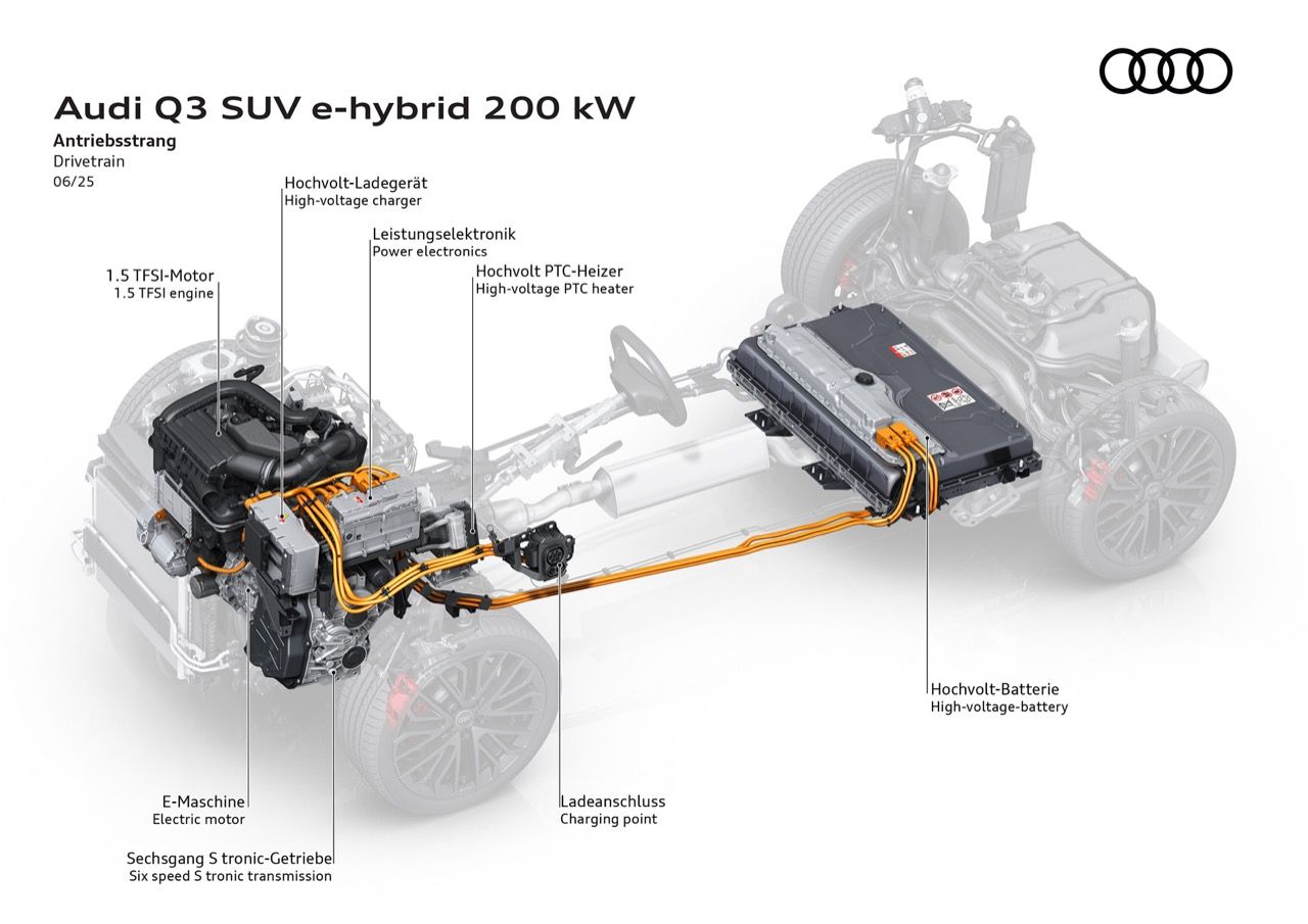 Audi Q3 e-hybrid ปลั๊กอินไฮบริด (PHEV) ระบบขับเคลื่อนไฟฟ้า ให้กำลังและประสิทธิภาพดีกว่าเดิม Audi Q3 SUV e-hybrid 272 แรงม้า 200 กิโลวัตต์ แรงบิดสูงสุด 400 นิวตันเมตร