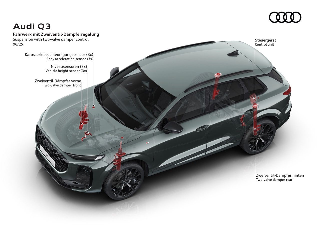 ช่วงล่างมาตรฐานที่ได้รับการพัฒนาเพื่อการควบคุมและสัมผัสด้านไดนามิกที่ดีกว่าเดิม ช่วงล่างแบบสปอร์ตและระบบช่วงล่างพร้อมระบบควบคุมโช้คอัพแบบสองวาล์ว อุปกรณ์เสริมที่ต้องจ่ายเพิ่มแนวเดียวกับ Porsche เน้นการขับแบบกระชับรัดกุม หนึ่งในจุดเด่นของระบบช่วยเหลือการขับขี่ คือ ระบบช่วยขับขี่แบบปรับได้ (Adaptive Driving Assistant Plus) เพื่อความปลอดภัยบนท้องถนน กล้องภายใน ตรวจจับอาการ ที่เป็นสัญญาณของการง่วงนอนและขาดสมาธิของผู้ขับขี่ ระบบฝึกจอดรถช่วยให้ลูกค้าสามารถสอน Audi Q3 ให้จอดรถได้เอง และระบบช่วยถอยหลังแบบใหม่ ช่วยให้คุณถอยรถออกจากทางตันได้อย่างมั่นใจ