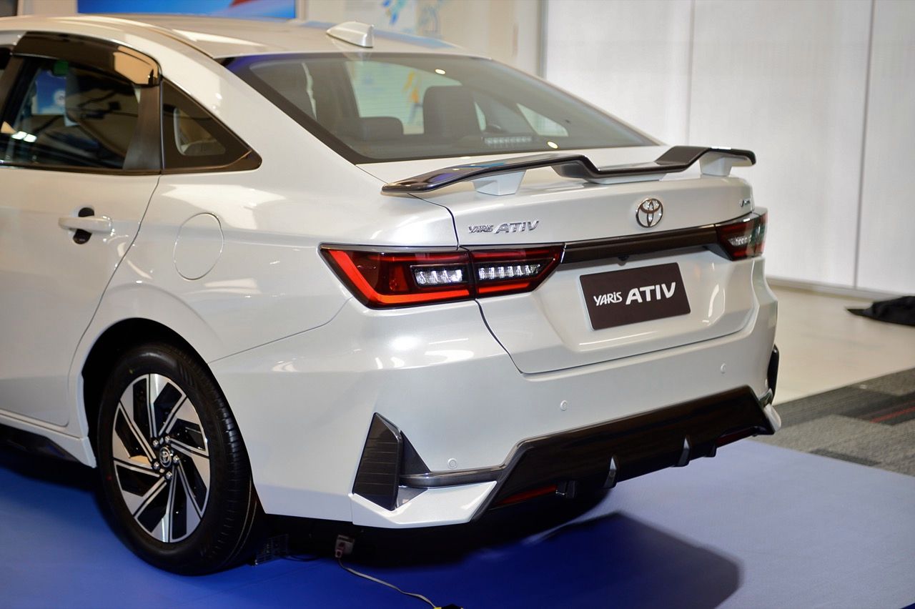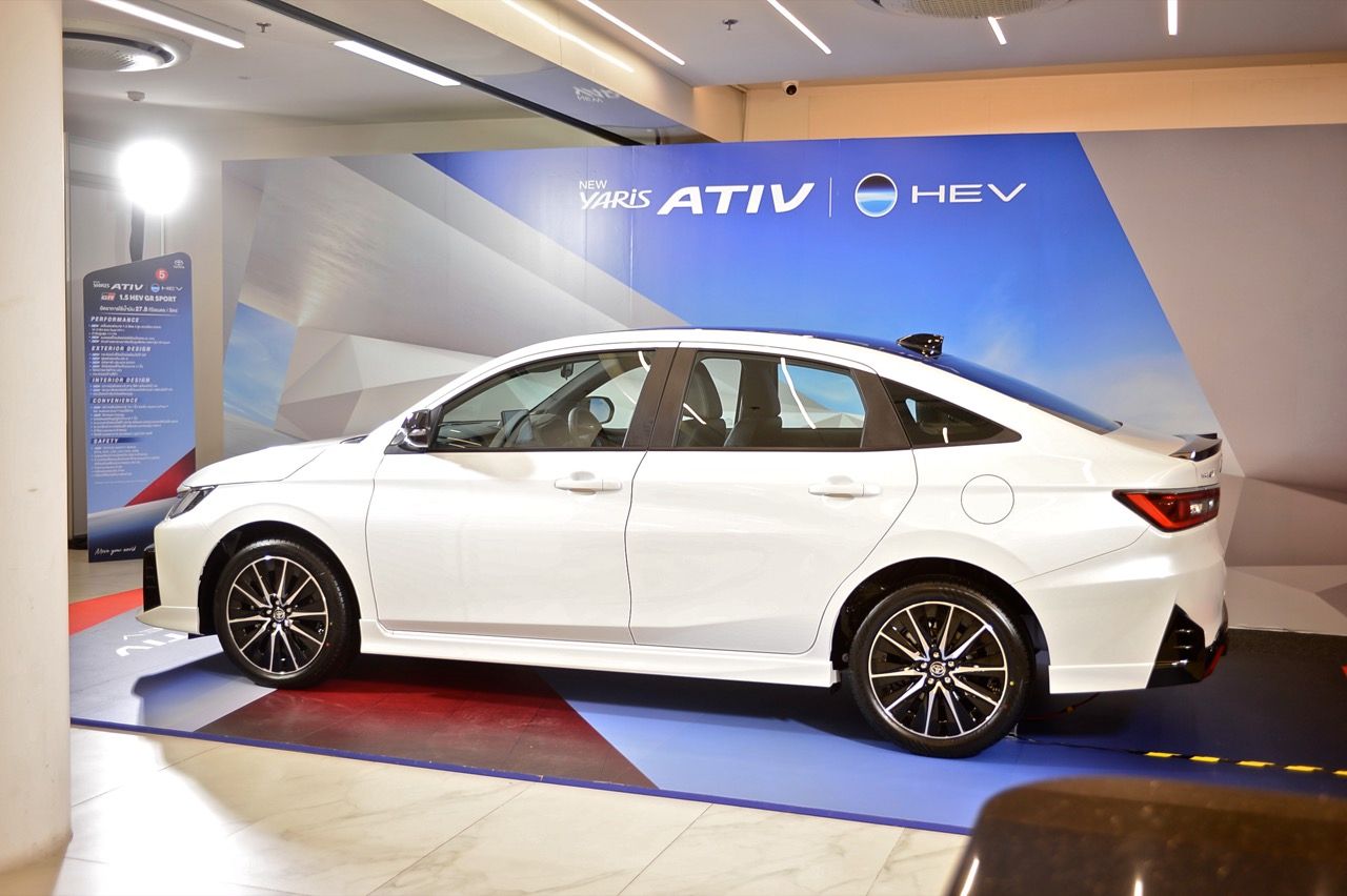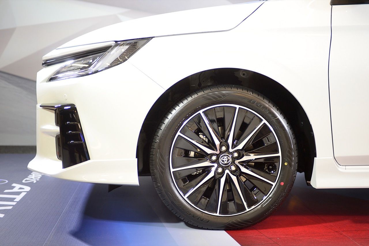 มาดูที่มิติตัวถังกันบ้าง ไม่มีอะไรเปลี่ยนแปลงสำหรับขนาดตัวถัง นอกจากรูน๊อตล้อที่เปลี่ยนจากสี่รู เป็นห้ารู เพื่อความแข็งแรง ขนาดความยาวของ Ativ HEV GR Sport อยู่ที่ 4440 มิลลิเมตร กว้าง 1740 มิลลิเมตร สูง 1480 มิลลิเมตร ความยาวฐานล้อ 2620 มิลลิเมตร ความสูงจากพื้นถึงใต้ท้องรถ 160 มิลลิเมตร รัศมีวงเลี้ยวแคบสุด 5.2 เมตร ความจุถังเชื้อเพลิง 36 ลิตร น้อยกว่ารุ่นเบนซินล้วน 4 ลิตร