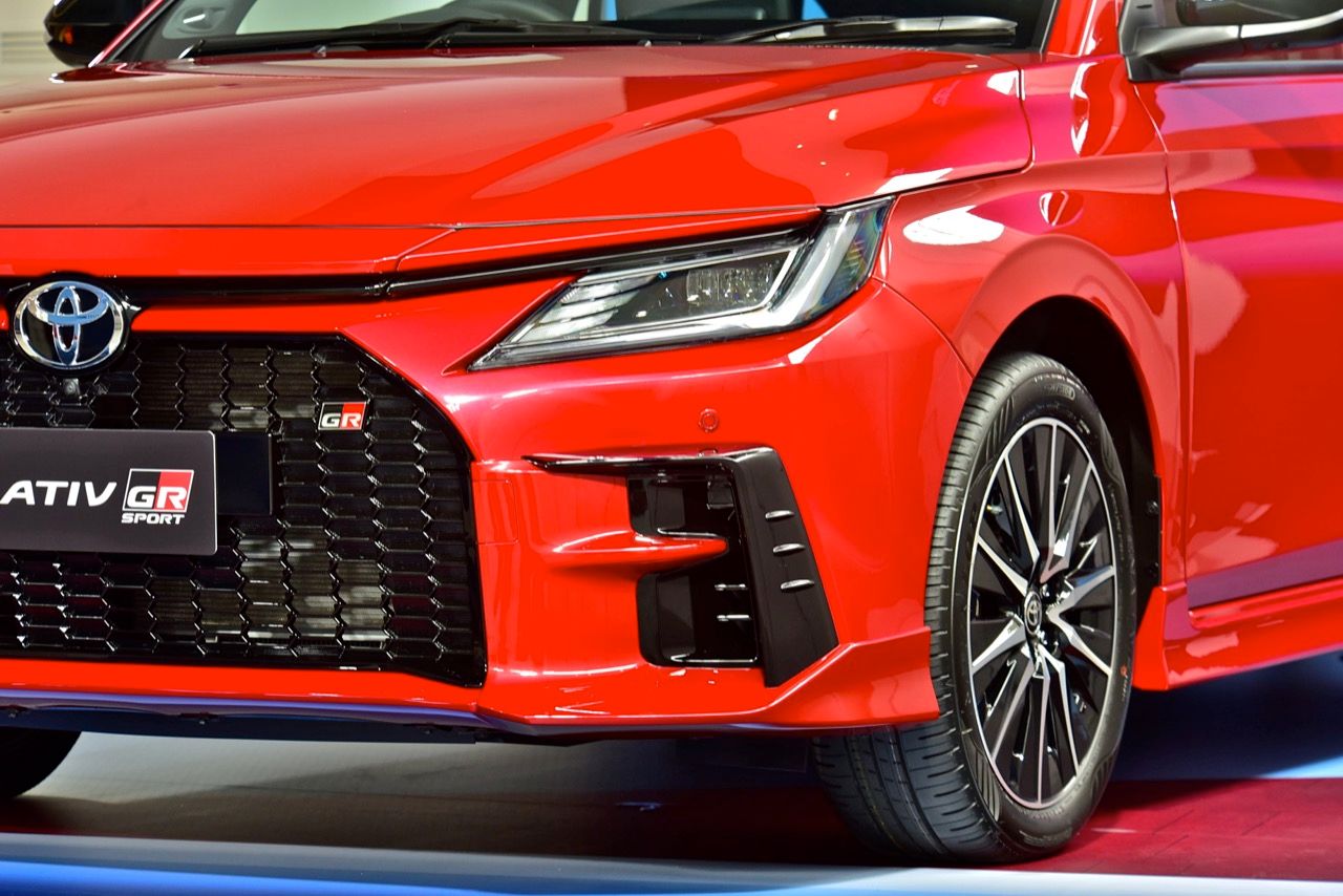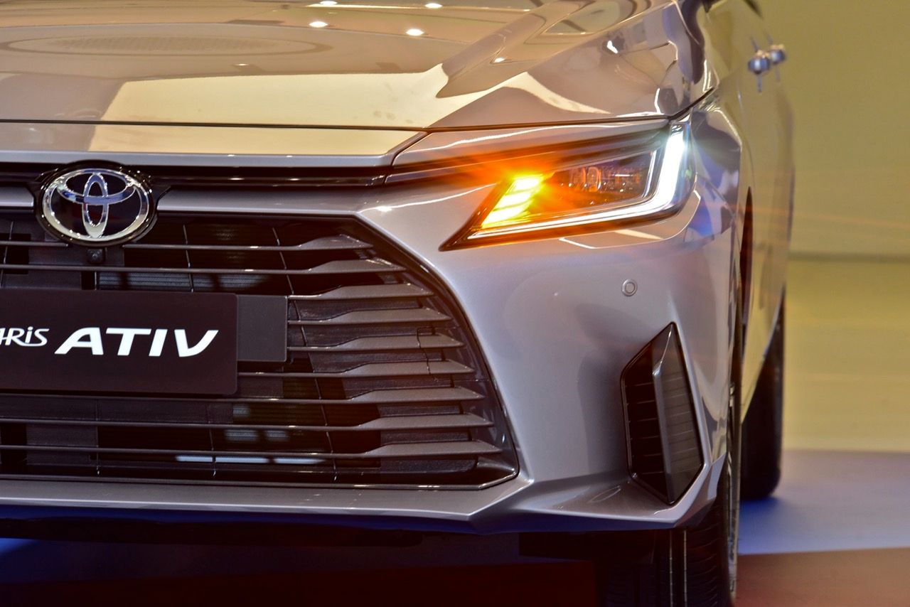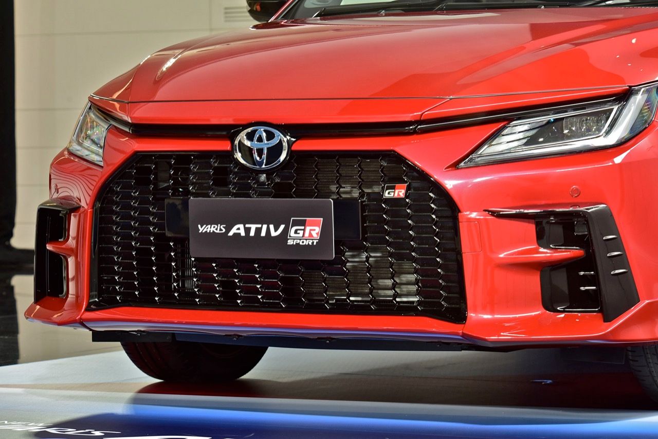 กระจังหน้าดีไซน์ใหม่ พร้อมโลโก้ GR ชุดกระจังใหม่ ทำให้ให้ Ativ HEV GR Sport ดูซิ่งมากกว่าเดิม ลวดลายในกระจังสื่อให้เห็นถึงการเชื่อมโยงอย่างลึกซึ้งกับกีฬามอเตอร์สปอร์ตที่ Toyotaให้ทั้งการสนับสนุนและลงแข่งสู้กับแบรนด์คู่แข่งในสนามอย่างถึงพริกถึงขิง
