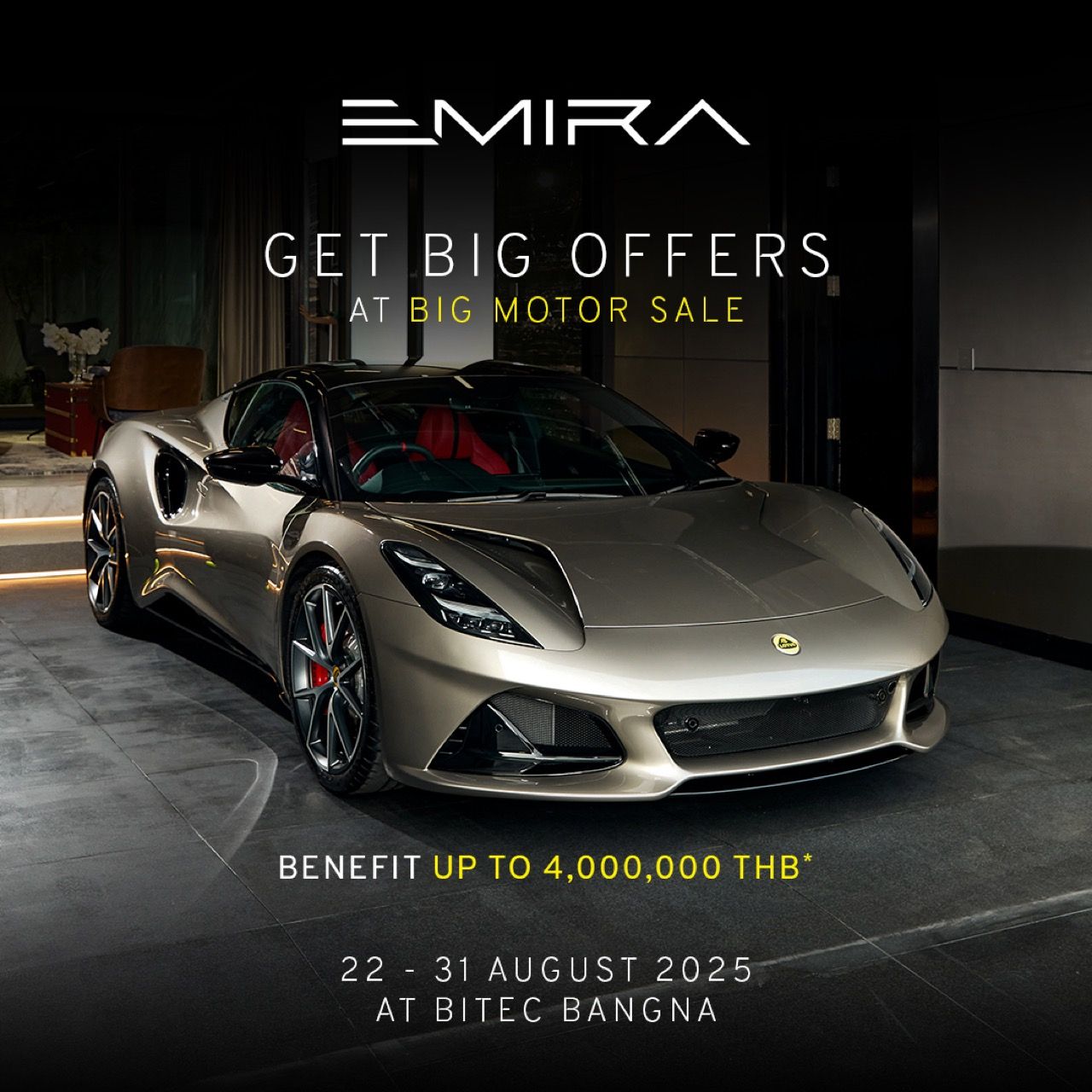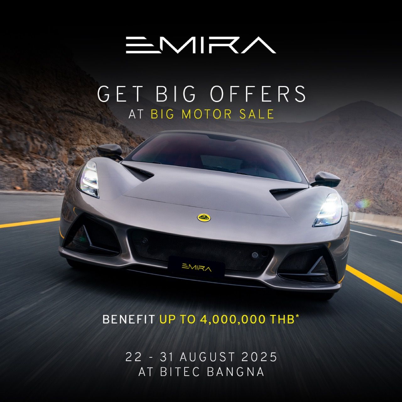คอนเซปต์ ‘Lotus For Everyone’ มอบสิทธิพิเศษเฉพาะงาน Big Motor Sale 2025 ด้วยข้อเสนอพิเศษ 4 ล้านบาท* สำหรับรถสปอร์ต อย่าง Lotus Emira First Edition V6 พร้อมเปิดจองในราคา 8.99 ล้านบาท เครื่องยนต์เบนซิน V6 ขนาด 3.5 ลิตร ซูเปอร์ชาร์จ (Supercharged) เป็นรถสปอร์ตรุ่นพิเศษที่คุ้มค่าแก่การครอบครอง Lotus Emira First Edition i4 เครื่องยนต์ 2.0 ลิตร เทอร์โบ (I4) เปิดจองราคาพิเศษที่ไม่เคยมีมาก่อนที่ 7.99 ล้านบาท เกียร์ 8 Speed dual clutch พวงมาลัยไฮดรอลิก (ไม่ไฟฟ้า) ตอบสนองการขับขี่ได้อย่างแม่นยำ