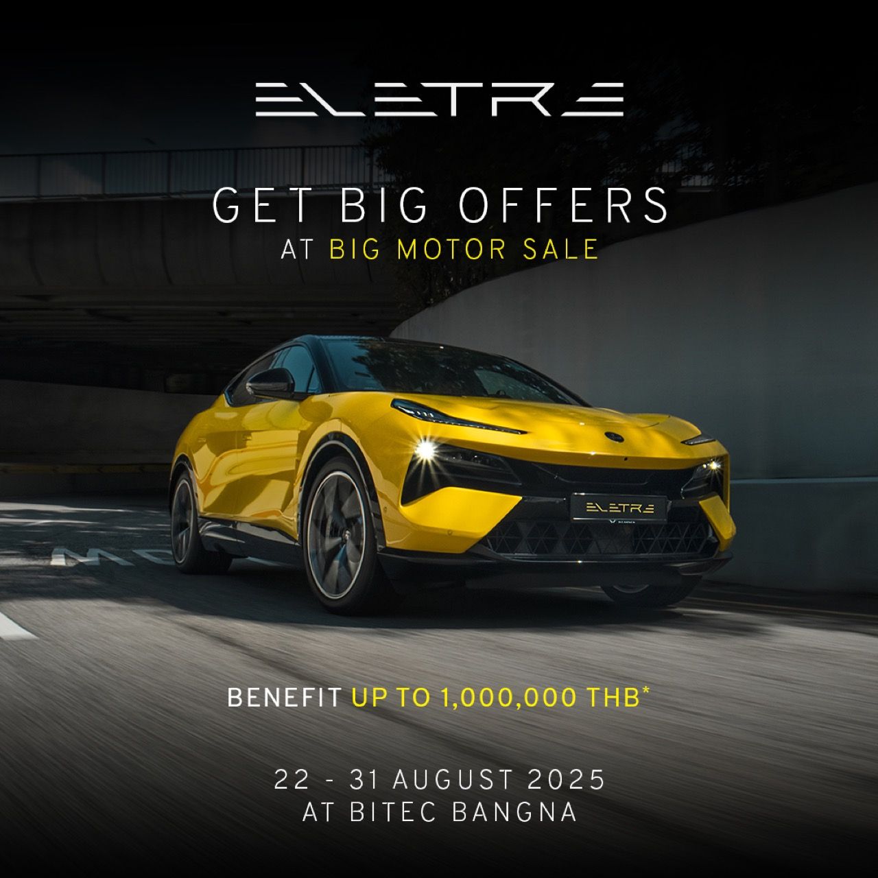 Lotus Cars Thailand ผู้นำเข้าLotus อย่างเป็นทางการในประเทศไทย เข้าร่วมงาน “Bangkok International Grand Motor Sale 2025” หรือ “Big Motor Sale 2025” รุกตลาดใหม่ เปิดโอกาสให้ผู้ที่สนใจรถยนต์แบรนด์ LOTUS ได้สัมผัสประสบการณ์ความล้ำสมัยของยานยนต์ไฟฟ้าสมรรถนะสูง มาครบทุกรุ่น พร้อมส่งมอบ เปิดจองล่วงหน้าสำหรับรถโมเดลเยียร์ใหม่ (Model Year 26) ให้เป็นเจ้าของรถยนต์ล็อตแรกได้แล้ววันนี้ ด้วยข้อเสนอพิเศษ ตั้งแต่วันที่ 22 – 31 สิงหาคม 2568 ที่บูธรถยนต์ Lotus Cars Thailand (A21) ณ ศูนย์แสดงสินค้าและการประชุม ไบเทค บางนา