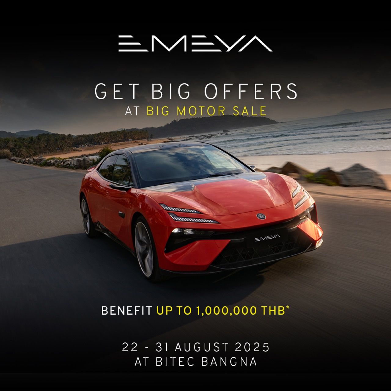 อีกไฮไลท์กับข้อเสนอพิเศษสำหรับรถที่พร้อมส่งมอบทันที กับรถยนต์สปอร์ตไฟฟ้าพรีเมียมยอดนิยม ทั้งไฮเปอร์เอสยูวีอย่าง Eletre และไฮเปอร์จีทีอย่าง Emeya รวมถึงรถโมเดลเยียร์ใหม่ (MY26) ที่พร้อมเปิดจองล่วงหน้าสำหรับล็อตแรก เพื่อรับสิทธิประโยชน์ก่อนใคร สำหรับลูกค้าที่จองในงาน รุ่น Emeya 600 ในราคาเริ่มต้น 4.89 ล้านบาท* รับข้อเสนอสุดเอ็กซ์คลูซีฟด้วยประกันภัยชั้นหนึ่ง นานถึง 2 ปี* และ Lotus Wall Box พร้อมติดตั้ง* และรุ่น Eletre 600 ในราคาเริ่มต้นที่ 5.29 ล้านบาท* รับประกันภัยชั้นหนึ่งนาน 1 ปี* และ Lotus Wall Box พร้อมติดตั้ง* สามารถรองรับการชาร์จไว AC สูงสุดถึง 22 kW อีกทั้งตัวรถทั้ง 2 รุ่น สามารถรองรับการชาร์ตไวแบบ DC ได้มากถึง 355 kW ด้วยแบตเตอรี่ LITHIUM-ION 800V มอบขุมพลังไฟฟ้าด้วยมอเตอร์คู่ (Dual Motor) กับพละกำลัง 905 แรงม้า และ 603 แรงม้า สามารถรองรับระยะทางขับขี่รุ่นเริ่มต้นได้สูงสุดที่ 610 กิโลเมตร* (WLTP) โดยในโมเดลเยียร์ใหม่นี้มีกว่า 10 รุ่นย่อย พร้อมยังมีข้อเสนอพิเศษอีกมากมายภายในงาน Big Motor Sale 2025