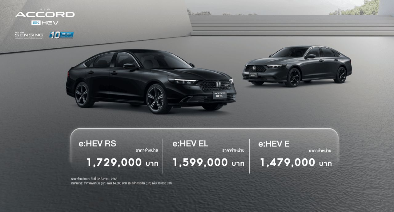 ‣Honda Accord e:HEV ราคาเริ่มต้น 1,529,000 บาท