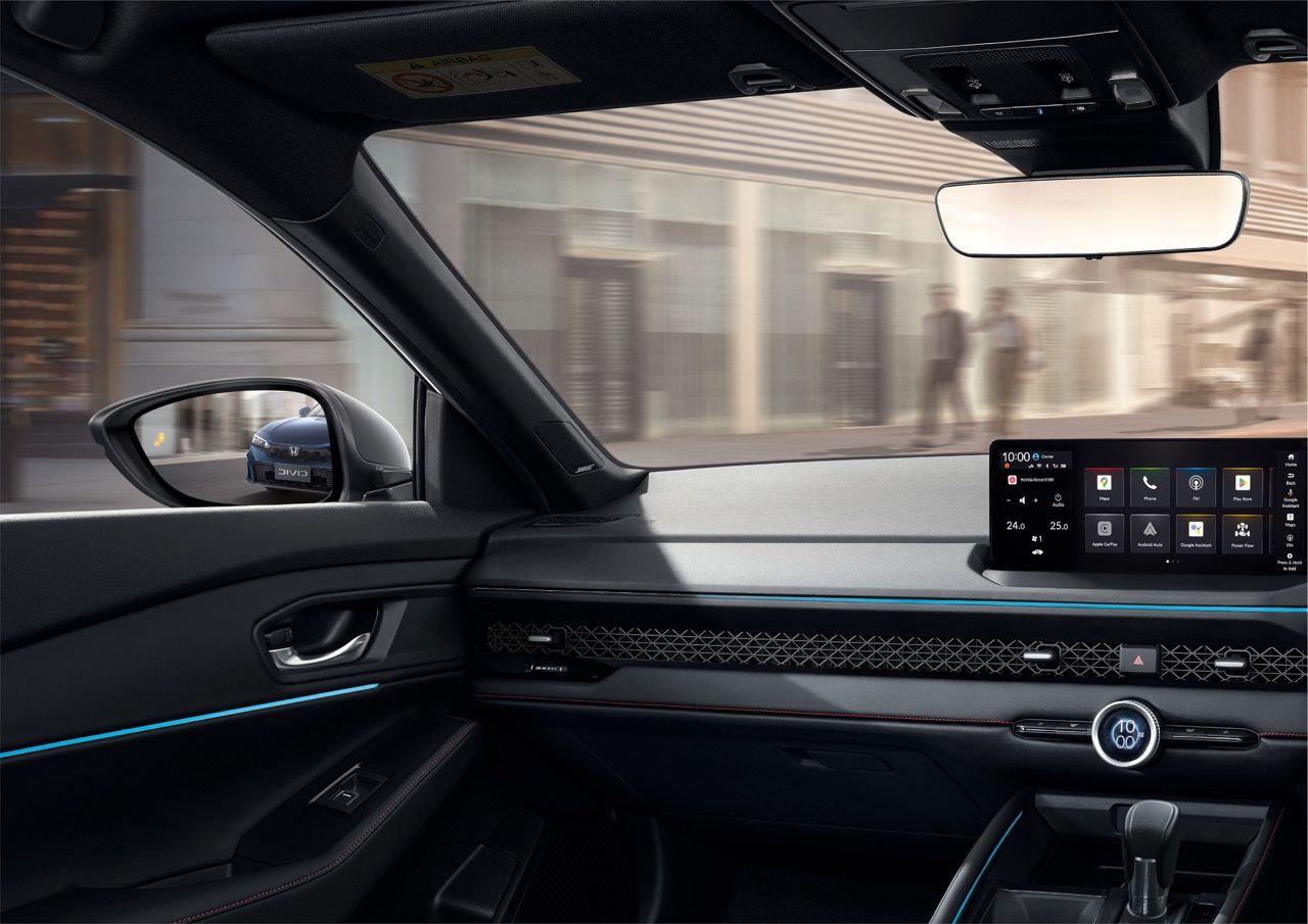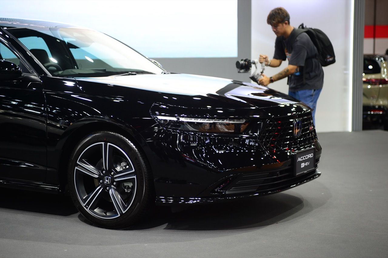 honda automobile (thailand) co. ltd เปิดตัว new Accord e:HEV เพิ่มฟีเจอร์เพื่อตอบสนองความต้องการของลูกค้า เพิ่มระบบช่วยเตือนมุมอับสายตาที่กระจกมองข้าง (Blind Spot Information - BSI) และ ระบบเตือนเมื่อมีรถเคลื่อนผ่านขณะถอย (Cross Traffic Monitor - CTM) ในทุกรุ่นย่อย อัปลุคใหม่ในทุกรุ่นย่อย ได้แก่