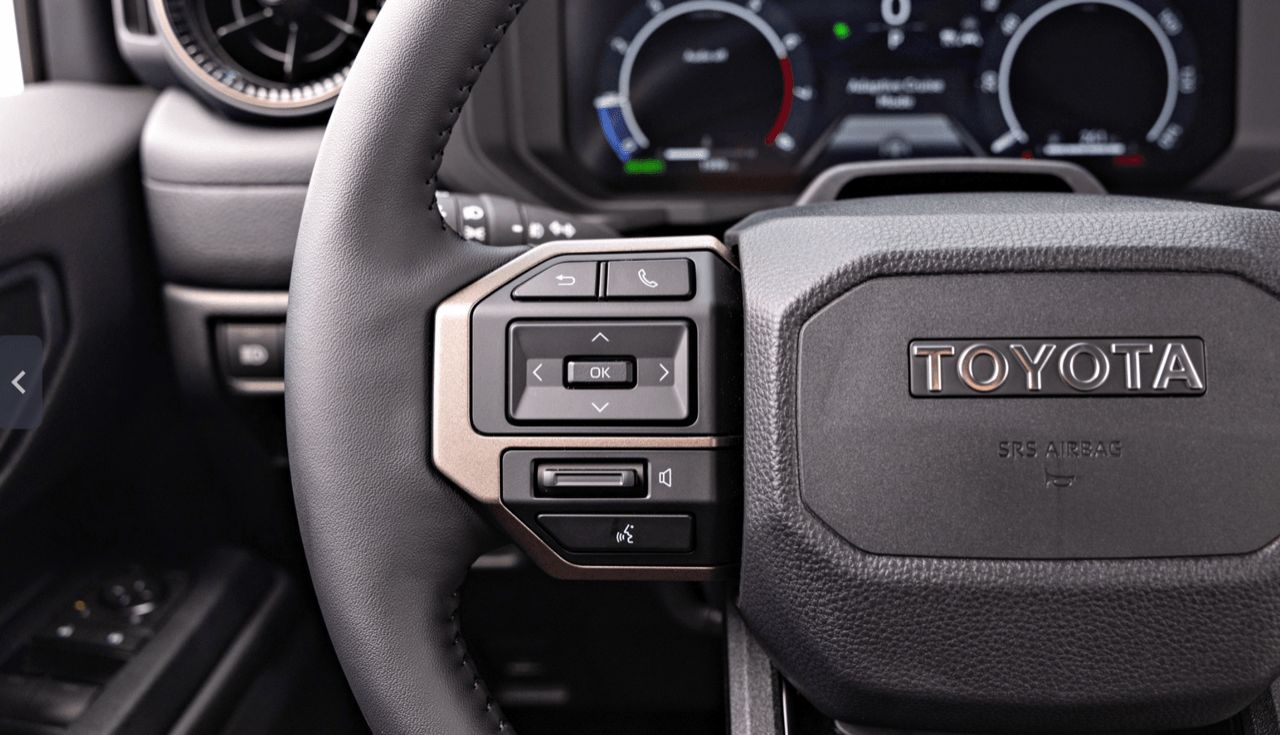 อุปกรณ์ภายในของรุ่นปรับโฉม ใส่ให้มาแน่นกว่าเดิม เริ่มจาก คันเกียร์หุ้มหนัง จอแสดงผลบนกระจกหน้า (HUD) อินเวอร์เตอร์ AC 2400 วัตต์ ฟังก์ชันบันทึกตำแหน่งเบาะนั่งคนขับ (แพ็กเกจเสริม) พอร์ต USB 6 พอร์ต *ปรับความยาวเบาะนั่งแบบแมนนวล กล่องเก็บความเย็นคอนโซล (แพ็กเกจเสริม) พวงมาลัยปรับไฟฟ้าแบบปรับเอียง/ยืดหดได้ พร้อมตราสัญลักษณ์ TOYOTA หลังคามูนรูฟ/เลื่อนไฟฟ้า พร้อมม่านบังแดด แผงหน้าปัดดิจิทัลขนาด 12.3 นิ้ว พร้อมหน้าจอแสดงผลมาตรวัดและแสดงข้อมูลอัตราสิ้นเปลืองเชื้อเพลิง ระบบช่วยเหลือผู้ขับขี่ ข้อมูลรถยนต์/การเดินทาง และข้อความแจ้งเตือน แผงหน้าปัดดิจิทัลขนาด 7 นิ้ว จอแสดงผลข้อมูลอเนกประสงค์แบบสี (MID) คอนโซลเหนือศีรษะ พร้อมไฟ LED, ไฟส่องแผนที่ LED และระบบควบคุม Safety Connect®* กระจกมองหลังแบบปรับลดแสงอัตโนมัติ เข็มทิศและตัวรับสัญญาณ HomeLink®* แผ่นรองพื้นรถสำหรับทุกสภาพอากาศ ที่วางแก้วและขวดน้ำ 12 ช่อง กระจกไฟฟ้าพร้อมระบบขึ้น/ลงอัตโนมัติแบบสัมผัสเดียวพร้อมระบบป้องกันการหนีบในทุกตำแหน่ง