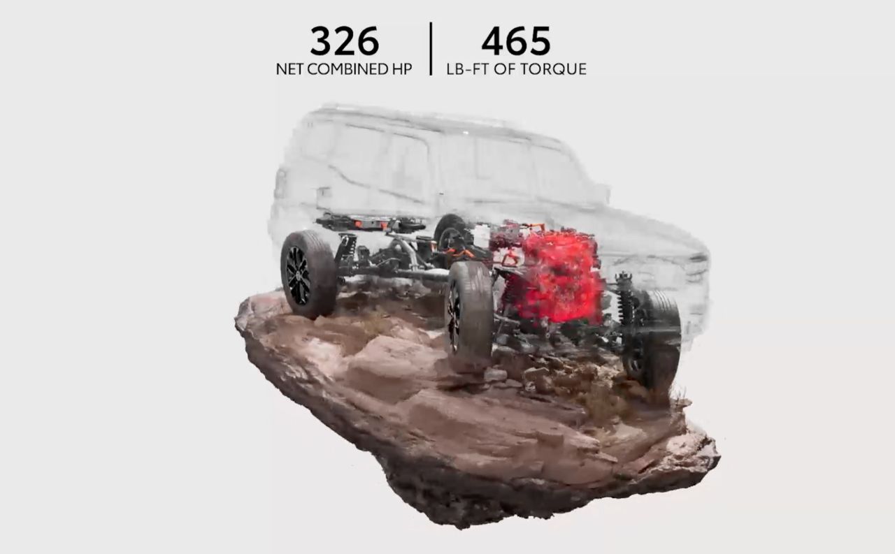 เครื่องยนต์ไฮบริด i-Force Max 2.4 ลิตร เทอร์โบชาร์จ ให้กำลัง 300 แรงม้านิดๆ แรงบิด 630 นิวตันเมตร เครื่องยนต์ทำงานร่วมกับเกียร์อัตโนมัติ 8 สปีด ผสานระบบขับเคลื่อนสี่ล้อแบบฟูลไทม์ เครื่องยนต์ 2.4 ลิตร สี่สูบ เทอร์โบชาร์จ ทำงานร่วมกับมอเตอร์ไฟฟ้าสองตัว ให้กำลัง 326 แรงม้า คล้ายกับระบบส่งกำลังของ Toyota Tacoma และ Land Cruiser ทุกรุ่น จะมาพร้อมกับระบบเกียร์อัตโนมัติ 8 สปีด ระบบขับเคลื่อนสี่ล้อ ประกอบด้วยเฟืองท้ายแบบล็อกกลาง ระบบเกียร์ 4-Low ระบบควบคุมความเร็วขณะคลานไปบนเส้นทางออฟโรด และระบบควบคุมความเร็วขณะขับลงทางลาดชัน การพ่วงด้วยไฮบริดทำให้ Land Cruiser มีการขับขี่ที่นุ่มนวล เงียบกว่ารถอเมริกันอย่าง Ford Bronco และ Jeep Wrangler