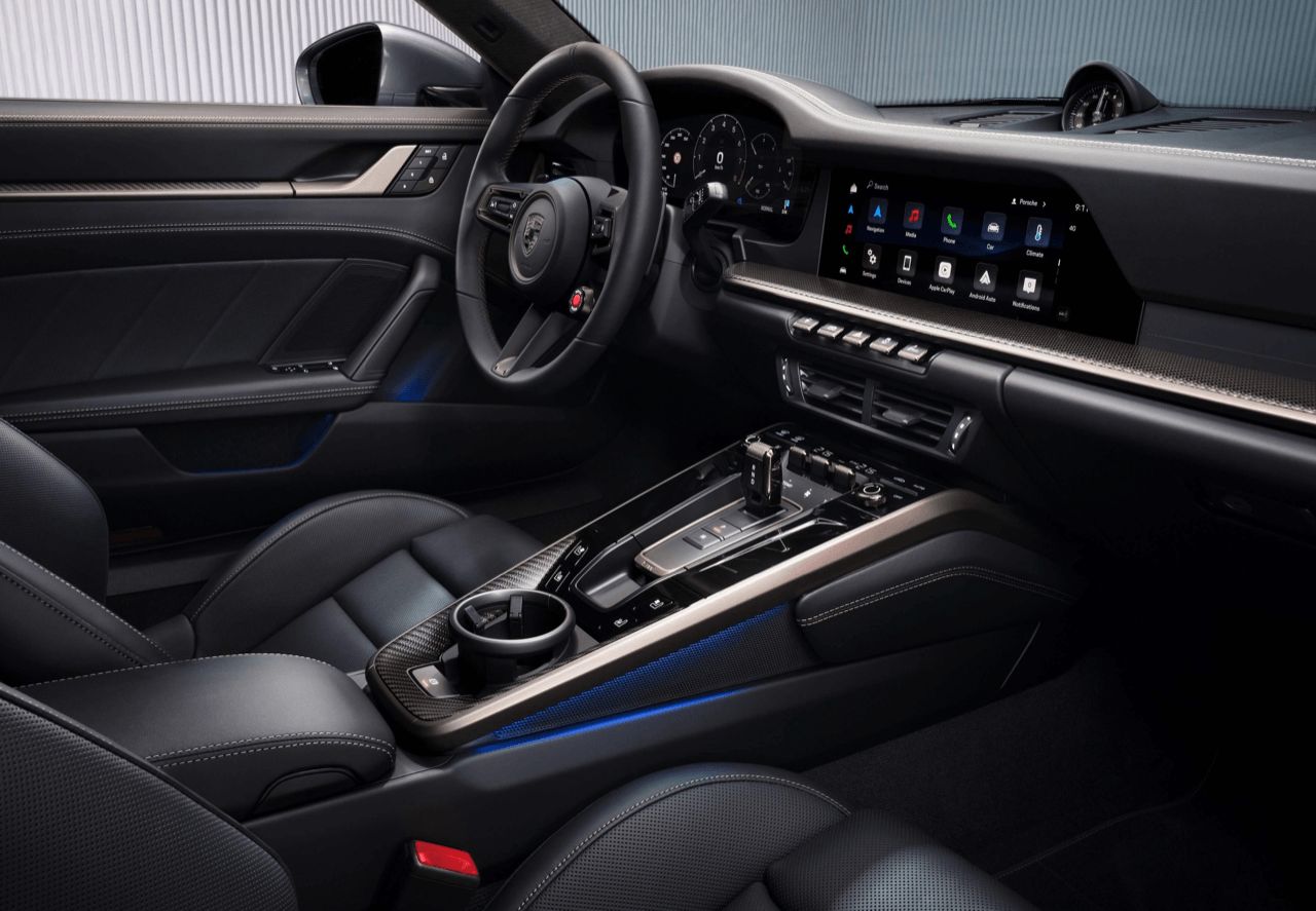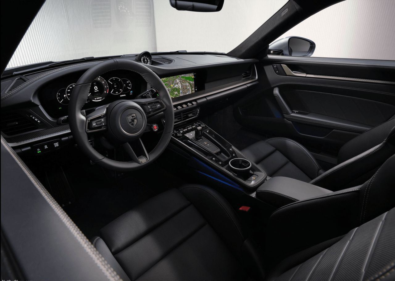 การตกแต่งด้วยสี Turbonite คือเอกลักษณ์ที่สะท้อนความพิเศษภายในตัวรถ โดยจะปรากฏอยู่ทั้งบนแผงประตู พวงมาลัย แผงแดชบอร์ด คอนโซลกลาง ตะเข็บตกแต่ง นาฬิกา Sport Chrono และชุดมาตรวัด รวมไปถึง เข็มขัดนิรภัยและปุ่มหลายจุดบนคอนโซลกลาง ก็ถูกออกแบบโดยใช้สี Turbonite เช่นกัน ซึ่งเป็นครั้งแรกที่ปอร์เช่ เพิ่มวัสดุตกแต่งลายคาร์บอนผสานกรอบโทน Neodyme และเพดานบุไมโครไฟเบอร์เจาะรู (Perforated Microfiber) พร้อมชั้นรองสีดำ เพื่อยกระดับความหรูหราและเอกลักษณ์ของห้องโดยสาร