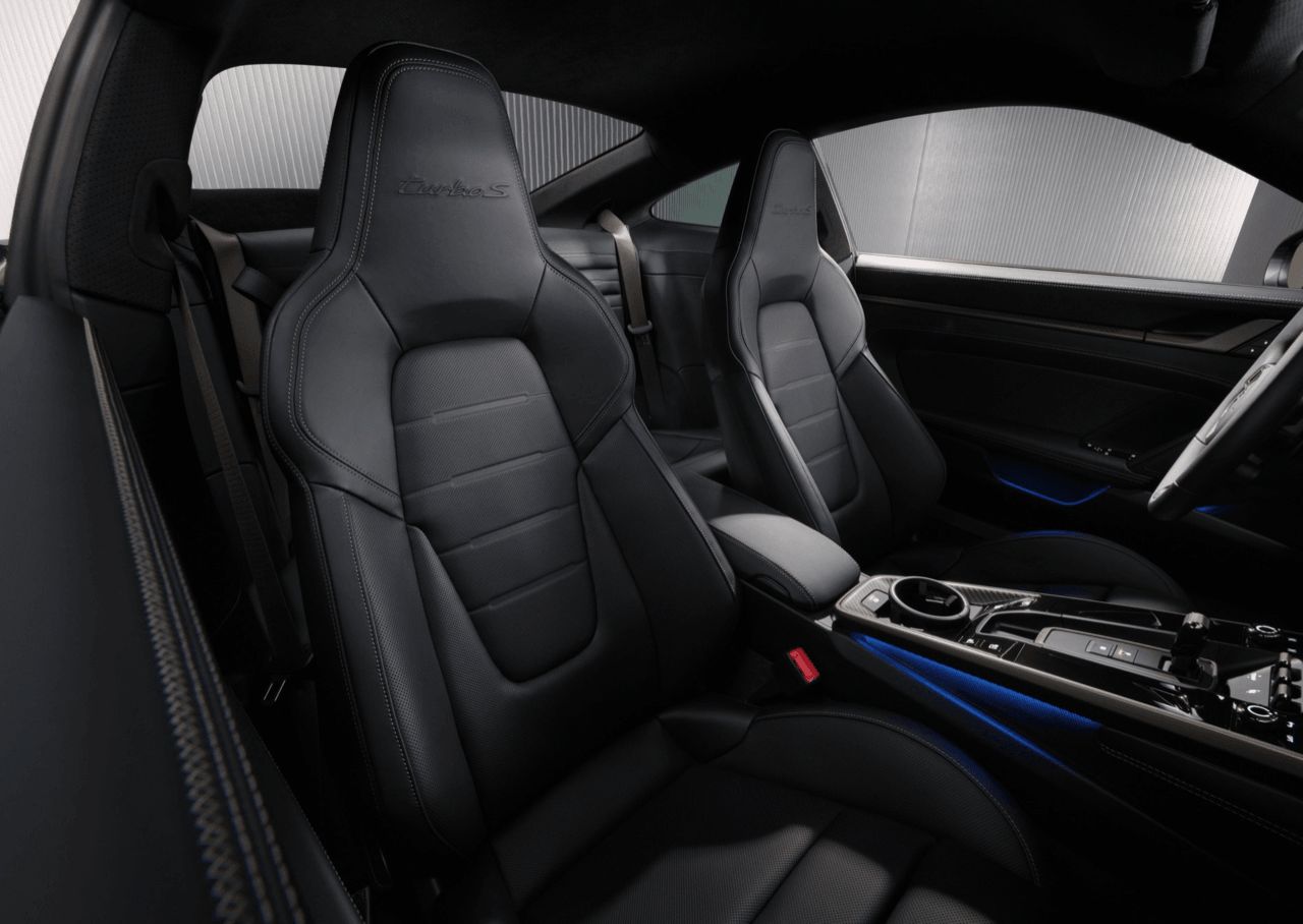 Porsche ติดตั้งไฟหน้า HD Matrix LED เป็นอุปกรณ์มาตรฐาน ฟังก์ชันไฟส่องสว่างอัจฉริยะ ช่วยเพิ่มความปลอดภัยเมื่อต้องขับขี่ในเวลากลางคืน Sport Chrono Package พร้อมมาตรวัดอุณหภูมิยาง ระบบช่วงล่าง PASM ปรับเฉพาะรุ่น ระบบควบคุมการโคลงไฟฟ้า–ไฮดรอลิก PDCC และท่อไอเสียสปอร์ตไทเทเนียม ภายในมีการติดตั้งเบาะ Sport Seats Plus แบบปรับไฟฟ้า 18 ทิศทาง พร้อมฟังก์ชันจำตำแหน่ง และตัวอักษร “Turbo S” บนพนักพิงศีรษะ ลายปั๊มนูน Turbo S บนเบาะและแผงประตู ได้รับแรงบันดาลใจจากดีไซน์ของ 911 Turbo 930 รุ่นแรก