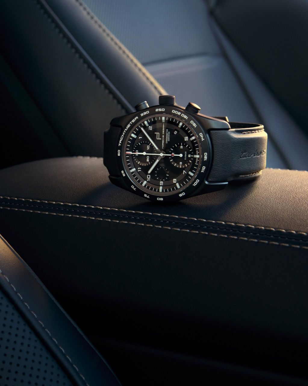 Porsche Design Timepieces Configurator เปิดโอกาสให้ออกแบบรถยนต์สปอร์ตบนข้อมือ สามารถปรับแต่งให้เหมือนกับ Porsche 911 Turbo S ได้อย่างสมบูรณ์แบบ ในทุก ๆ รายละเอียด หน้าปัดสีดำรุ่นใหม่มาพร้อมกับองค์ประกอบในโทน Turbonite สะท้อนถึงเอกลักษณ์ของตัวรถ นอกจากสี Turbonite แล้ว สีตัวถังในทุกเฉดสี (รวมถึงสีที่สั่งทำเฉพาะ) ยังสามารถนำมาปรับแต่งรอบหน้าปัดนาฬิกาได้ โดยตัวเรือนทำมาจากไทเทเนียมเคลือบสีดำและสายทำมาจากหนังและด้ายจากภายในรถยนต์ปอร์เช่ ไฮไลต์คือตัวอักษร “Turbo S” ถูกปั๊มลงบนสาย โดยนาฬิกา ขับเคลื่อนด้วยกลไก Porsche Design Caliber WERK 01.200 ผ่านการรับรอง COSC ฟังก์ชัน Flyback โรเตอร์ขึ้นลาน สะท้อนดีไซน์จากล้อของ 911 Turbo S พร้อมตราสัญลักษณ์ของ Porsche ในสี Turbonite ด้านหลังตัวเรือน สามารถสลักข้อความได้ โดย Chronograph 911 Turbo S ทุกเรือน ถูกสั่งผลิตด้วยมือแบบสั่งทำพิเศษที่โรงงานนาฬิกา Porsche ในเมืองเกรนเชน (Grenchen) ประเทศสวิตเซอร์แลนด์