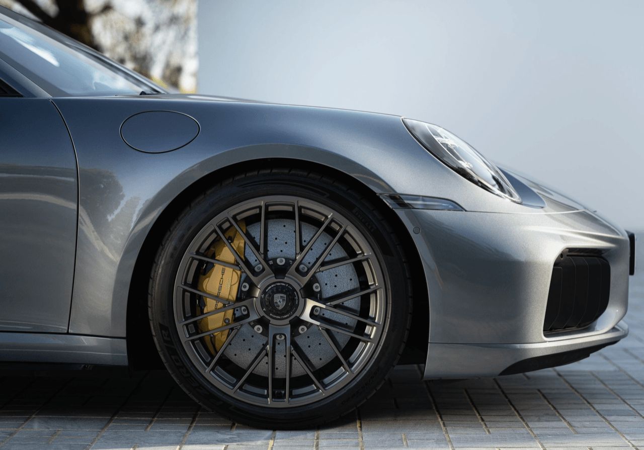 ระบบ Porsche Ceramic Composite Brake (PCCB) ติดตั้งมาเป็นมาตรฐาน มาพร้อมผ้าเบรกแบบใหม่ สามารถรองรับแรงกดมหาศาล ช่วยยกระดับสมรรถนะการเบรกและสัมผัสแป้นเบรกให้ดียิ่งขึ้น ทีมวิศวกรยังได้เพิ่มเส้นผ่านศูนย์กลางของจานเบรกหลัง จาก 390 มม. เป็น 410 มม. ด้านหน้า ใช้จานเบรกขนาด 420 มม. ทำให้ Porsche 911 Turbo S ใหม่ มาพร้อมระบบเบรก PCCB ที่มีขนาดใหญ่ที่สุดเท่าที่ Porsche เคยติดตั้งในรถยนต์รุ่นสองประตู