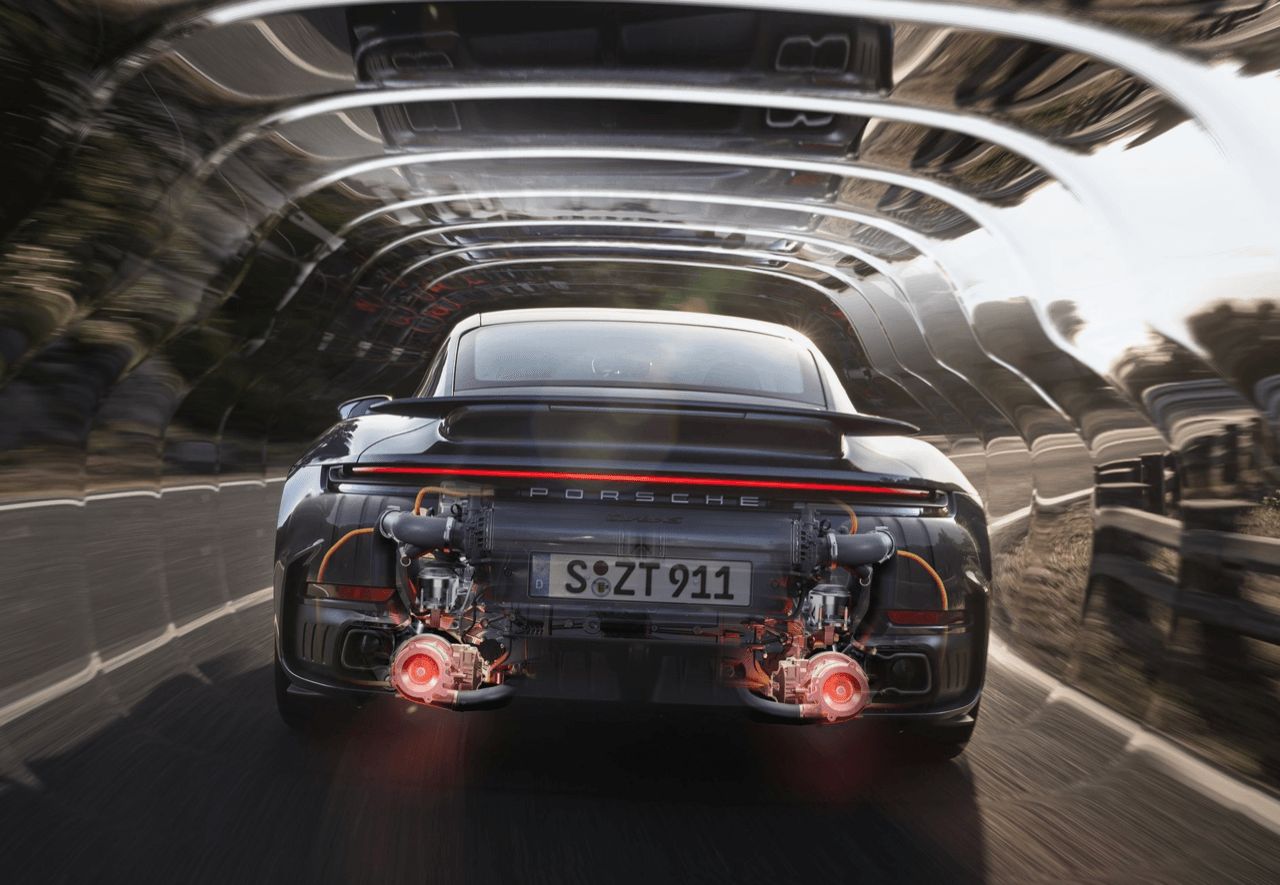 ระบบควบคุมแชสซีไฟฟ้า–ไฮดรอลิก (ehPDCC) มาพร้อมระบบยกเพลาหน้าเป็นมาตรฐาน ตอบสนองได้รวดเร็วขึ้น การผสานเข้ากับระบบไฟฟ้าแรงสูง 400 โวลต์ ระบบท่อไอเสียสปอร์ตใหม่ที่ติดตั้งมาเป็นมาตรฐาน มาพร้อมหม้อพักไอเสียด้านหลังและปลายท่อไอเสียที่ทำจากไทเทเนียม ด้วยเสียงเร้าใจ ผ่านการปรับแต่งเพื่อรถรุ่นสูงสุดโดยเฉพาะ ท่อระบายทั้งชุด ลดน้ำหนักได้ถึง 6.8 กิโลกรัม การปรับปรุงเครื่องยนต์ภายในยังช่วยเพิ่มมิติของเสียงรถให้มีความเร้าใจมากยิ่งขึ้น ด้วยเครื่องยนต์บ็อกเซอร์ 3.6 ลิตร ทำงานด้วยระบบวาล์วไทมิ่งแบบไม่สมมาตร (Asymmetrical Timing) เพื่อสร้างเสียงเครื่องยนต์ที่มีหลากหลายมิติและความถี่ ทำให้ได้เสียงที่หนักแน่น ลึก และคมชัดยิ่งขึ้น