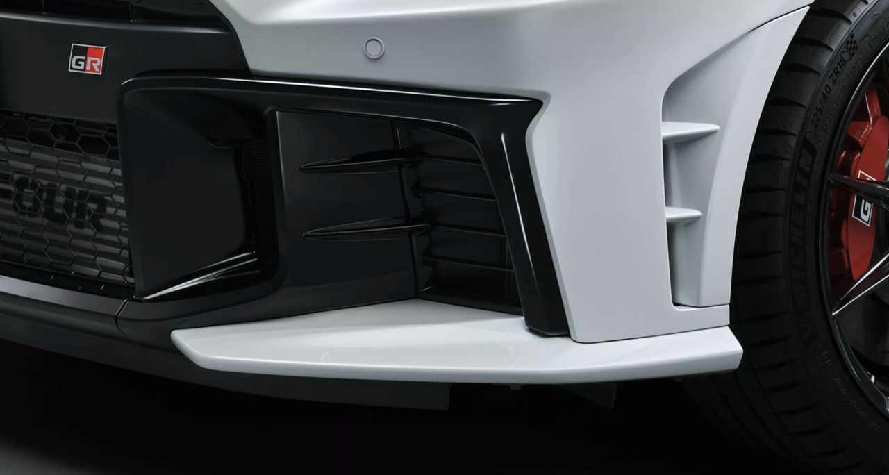 ฝากระโปรงมีช่องระบายอากาศรูปทรงคล้ายกับฝากระโปรงคาร์บอนไฟเบอร์ของ GRMN Yaris รุ่นแรงสุด แต่ผลิตจากอะลูมิเนียม สปลิตเตอร์ช่วยลดแรงยกด้านหน้า ช่องดักลมบนบังโคลนหน้า เพิ่มการควบคุมและความรู้สึกในการบังคับเลี้ยว ฝาครอบถังเชื้อเพลิงแบบแบน ชุดเพิ่มประสิทธิภาพการไหลเวียนของอากาศใต้ท้องรถ ช่องระบายอากาศเสริมด้านหลัง ลดแรงกดทางอากาศพลศาสตร์ที่กันชน ปีกหลังขนาดใหญ่แบบปรับได้ เพิ่มเสถียรภาพในความเร็วสูงเมื่อใช้เบรกกะทันหัน