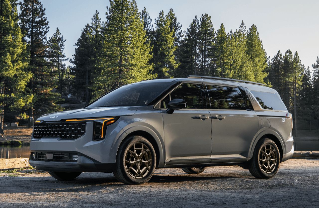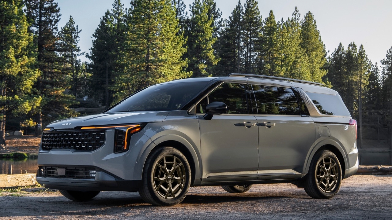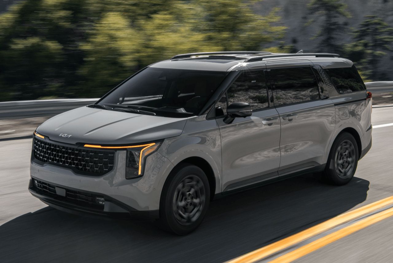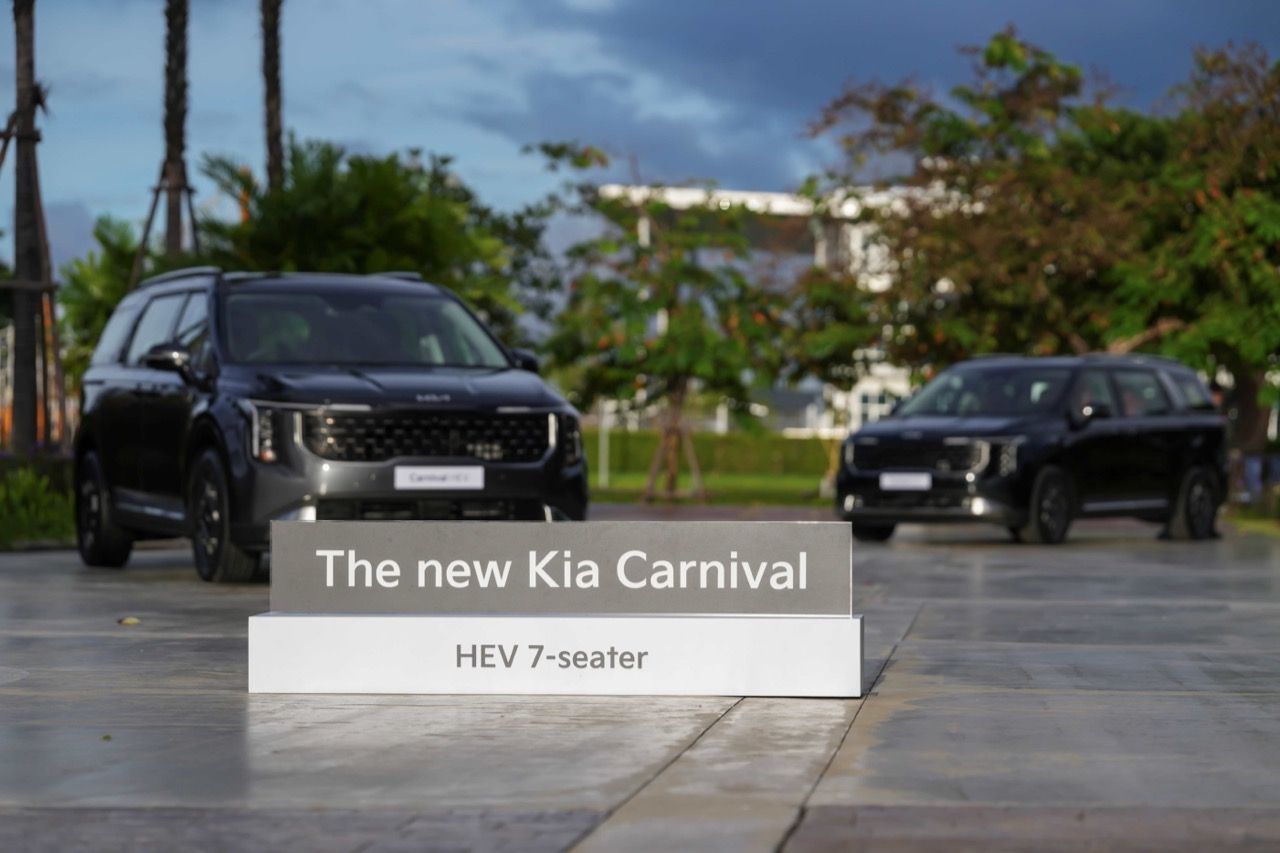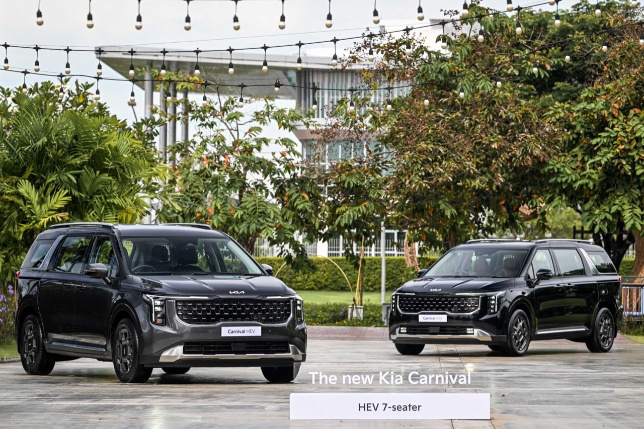 The new Kia Carnival HEV 7-seater จำหน่ายในประเทศไทย 2 รุ่นย่อย ได้แก่ The new Kia Carnival HEV 7-seat Luxury ราคา ราคา 2,699,000 บาท และ The new Kia Carnival HEV 7-seat Premium ราคา 2,499,000 บาท ดีไซน์ที่ได้รับการปรับโฉมใหม่ทั้งด้านหน้าและด้านหลัง กระจังหน้าแบบ ‘Tiger nose’ โคมไฟหน้าพร้อมไฟส่องสว่างแบบ LED ดวงไฟทรงลูกบาศก์ ชุดไฟหน้าและไฟท้ายแบบ Star Map Lighting ล้ออัลลอยขนาด 19 นิ้ว ลายมใหม่ แร็คหลังคา เพิ่มความอเนกประสงค์ให้กับการใช้งานจริง (แร็คหลังคาสามารถรองรับน้ำหนักสูงสุด 100 กิโลกรัม) ประตูสไลด์ไฟฟ้า (Smart Power Sliding Door) ฝากระโปรงท้ายไฟฟ้า (Smart Power Tailgate) ระบบเปิด-ปิดอัตโนมัติ เมื่อเข้าใกล้ตัวรถโดยที่มีกุญแจ Smart Key อยู่ด้วย รุ่น Luxury จะมี Dual Sunroof ที่ให้แสงธรรมชาติส่องเข้ามา สำหรับตัวเลือกสีภายนอก มีให้เลือกทั้งหมด 4 สี ได้แก่ สีขาว Snowflake White Pearl สีเทา Meteor Grey สีดำ Jet Black และสีน้ำเงิน Astra Blue