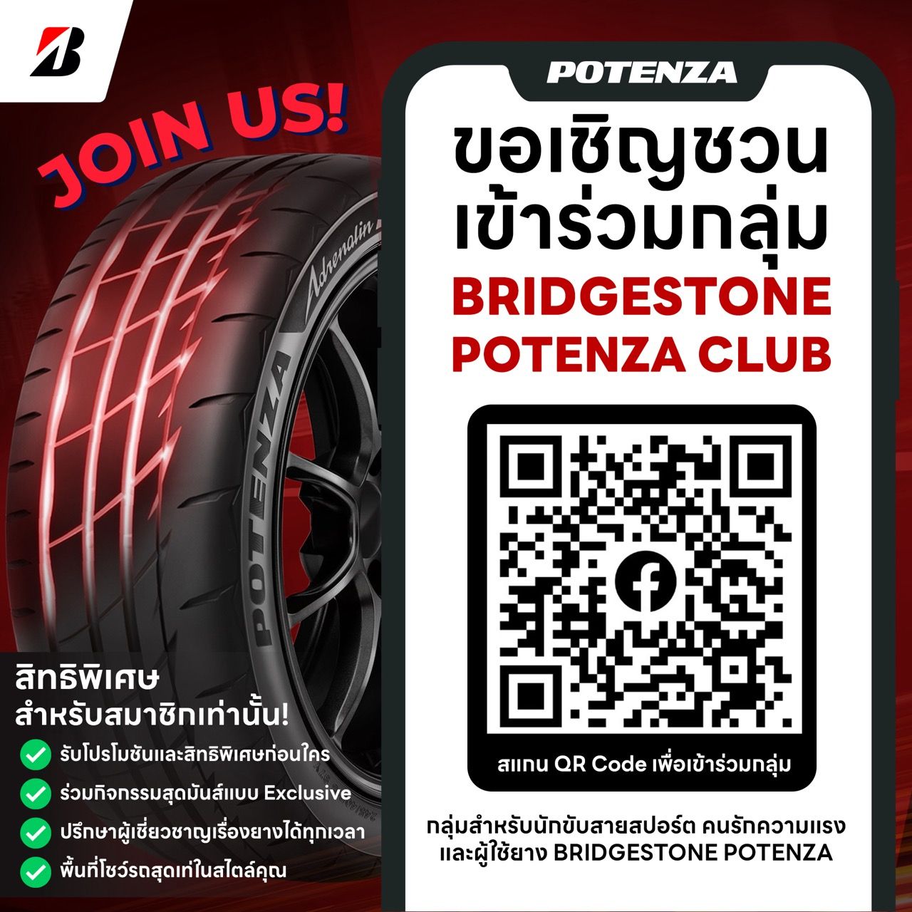 เข้าร่วมเป็นส่วนหนึ่งของคอมมูนิตี้คนรัก BRIDGESTONE POTENZA ได้ที่ Facebook Group: