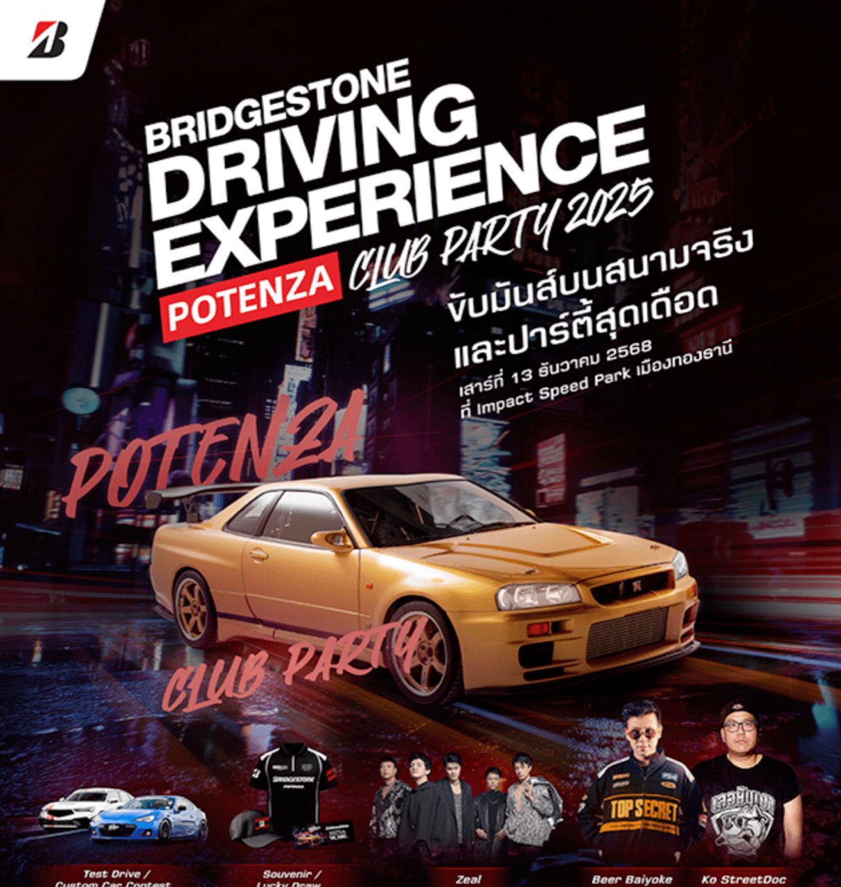 1: รับสิทธิ์สมัครร่วมอีเวนต์สุดยิ่งใหญ่แห่งปี “2025 Bridgestone Driving Experience: POTENZA Club Party” วันที่ 13 ธันวาคม 25668 ที่ Impact Speed Park เมืองทองธานี