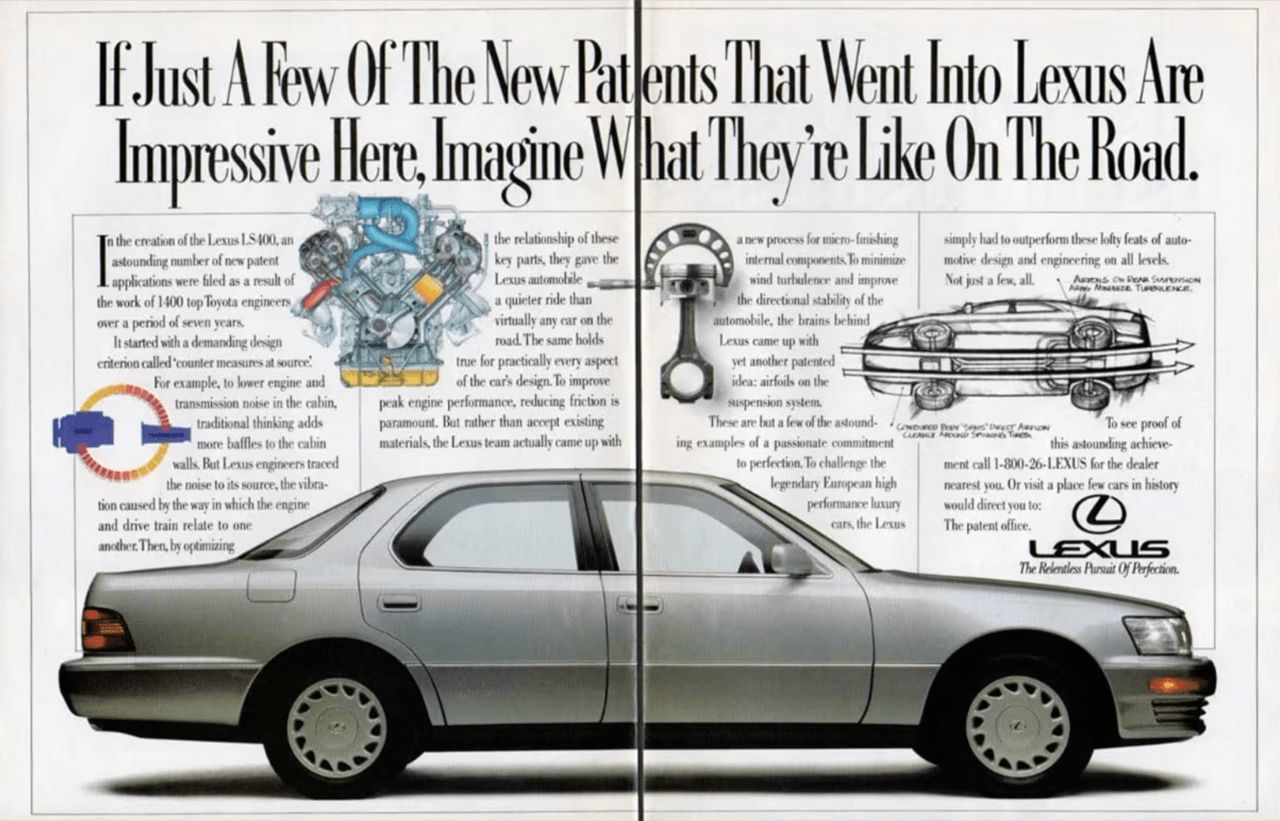 รถ Lexus LS400 ซึ่งเป็นรถรุ่นแรกสุดในประวัติศาสตร์ของบริษัทหนึ่งเดียวจากเอเซียก็ประสบความสำเร็จอย่างงดงาม แบรนด์ Lexus ก้าวขึ้นสู่ทำเนียบรถหรูเทียบเท่ายนตกรรมชั้นนำจากยุโรปอย่าง BMW หรือ Mercedes Benz กลายเป็นที่ยอมรับทั้งในสหรัฐอเมริกา ยุโรป รวมถึงเอเซีย ในตลาดรถยนต์ Luxury ระดับโลก หลังจากนั้น การทำแบบสอบถามสำรวจความพึงพอใจในระหว่างการใช้งานของลูกค้าได้ปรากฏผลออกมาว่า รถ Lexus ได้รับคะแนนที่แสดงถึงความพึงพอใจในการใช้ (Car Satisfacrtion Identity) สูงสุดเหนือกว่ารถระดับเดียวกัน การสำรวจดังกล่าววัดจากความชอบของลูกค้าต่อสมรรถนะของตัวรถและเทคโนโลยีของระบบควบคุมต่างๆ รูปลักษณ์ที่งดงามหรูหรา รวมถึงการยอมรับในมาตรฐานของการบริการหลังการขายด้วยความเชี่ยวชาญและการเป็นเลิศในการให้บริการความสำเร็จในแง่มุมของการยอมรับจากผู้ใช้รถยนต์ทั่วโลกเป็นเครื่องยืนยันว่าแบรนด์ Lexus ไม่เพียงแค่เป็นรถยนต์ที่สมบูรณ์แบบที่ใช้เทคโนโลยีไฮเทคเท่านั้น ตัวรถ Lexus ทุกรุ่นทุกคันตั้งแต่อดีตจนถึงปัจจุบันยังมีระบบความปลอดภัยในระดับสูงสุดและความสะดวกสบายในการใช้งาน ในขณะเดียวกันยังเปี่ยมด้วยภาพลักษณ์ของความสง่างามที่นำความภาคภูมิใจให้กับผู้ที่ได้ครอบครอง