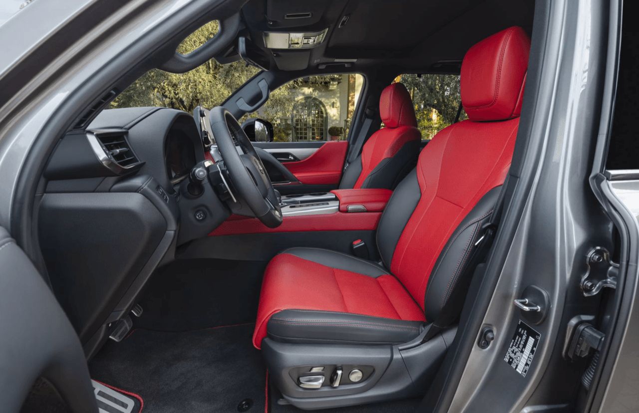 บันไดข้างขนาดใหญ่ที่ส่องสว่างได้อย่างสะดวกสบายในเวลากลางคืน และมือจับที่หนา ทำให้ขึ้นรถได้ง่าย โดยเฉพาะอย่างยิ่งสำหรับรถเอสยูวีขนาดใหญ่ เมื่อเข้าไปภายในรถ พบกับเบาะนั่งหุ้มหนังที่ดูสวยงามและให้ความรู้สึกสบาย รองรับสรีระได้เป็นอย่างดี นี่คือเบาะนั่งที่สามารถนั่งลงได้อย่างสบายสำหรับการเดินทางไกล เบาะนั่งคู่หน้าทั้งสองข้าง ปรับด้วยไฟฟ้าได้ 16 ทิศทาง รวมถึงส่วนรองรับต้นขา ซึ่งเหมาะอย่างยิ่งสำหรับคนที่มีรูปร่างสูง นอกจากนี้ยังมีส่วนรองรับหลังส่วนล่างแบบสองทิศทาง อีกหนึ่งออปชันมาตรฐาน คือระบบทำความเย็นและระบายอากาศสำหรับเบาะนั่งด้านหน้า โหมดอัตโนมัติ เป็นอีกหนึ่งสัมผัสที่ชาญฉลาด และให้ความรู้สึกหรูหราแบบ Lexus อย่างแท้จริง ด้านหน้าคนขับคือพวงมาลัยหุ้มหนังนุ่ม ขนาดพอเหมาะพอดีและให้ความรู้สึกสบายมือ การปรับแกนพวงมาลัยด้วยไฟฟ้าให้ความรู้สึกหรูหรา