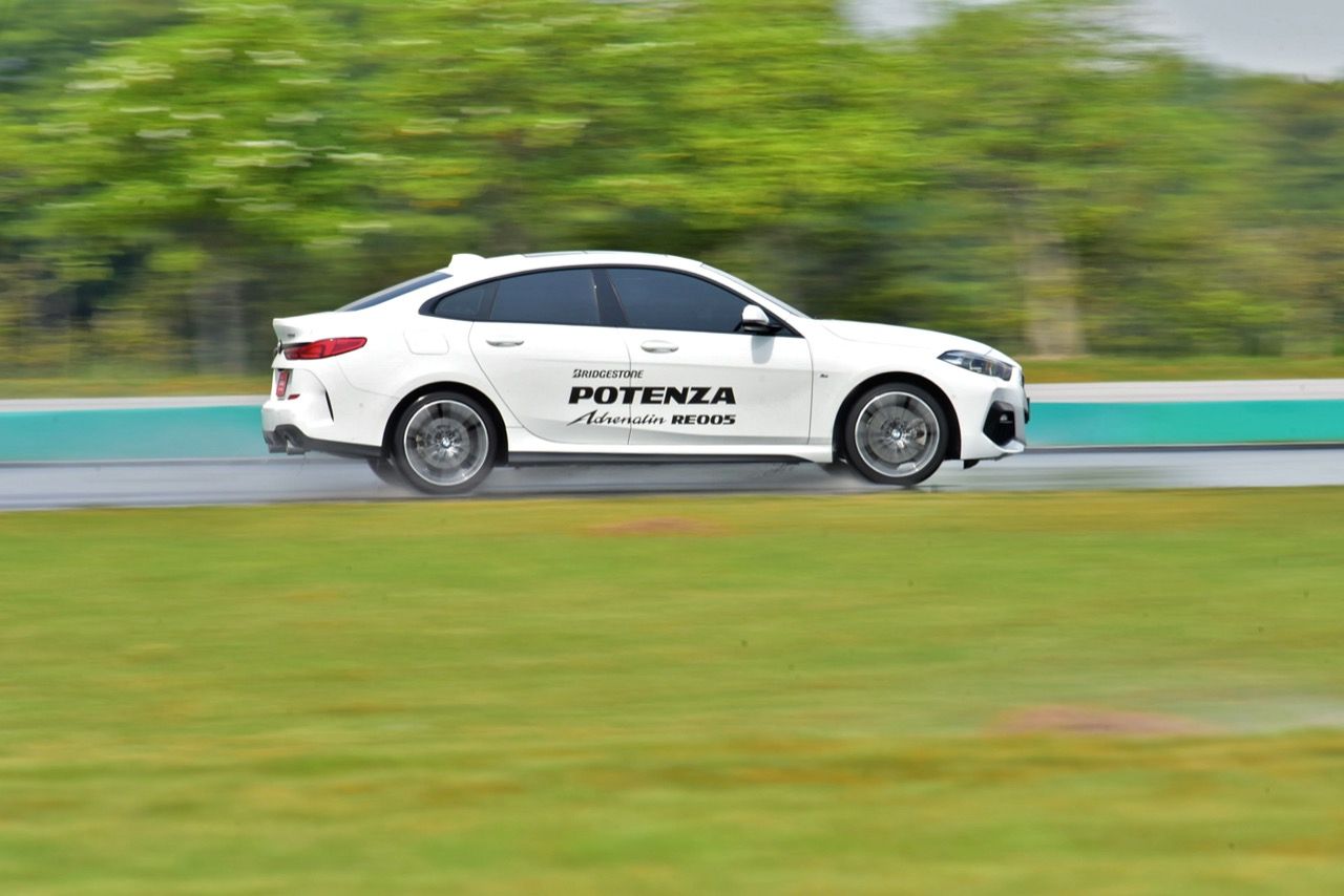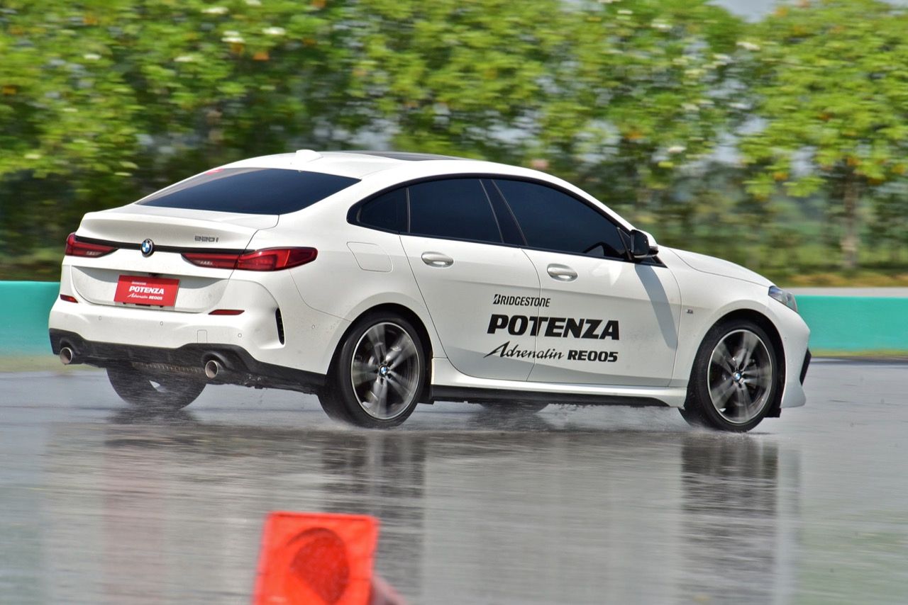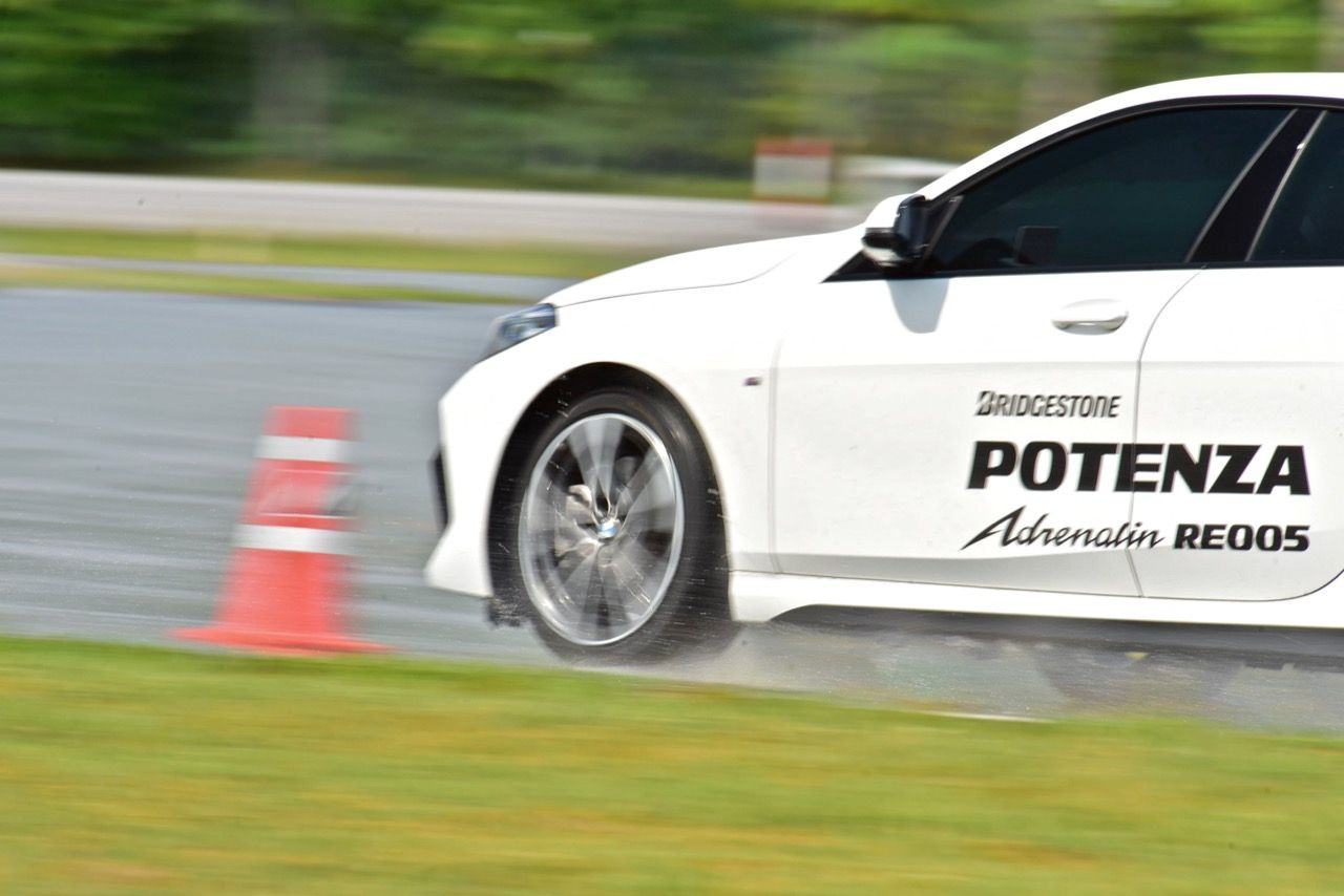 ในสนามทดสอบของ Bridgestone ย่านอำเภอวังน้อย Potenza RE005 พิสูจน์ศักยภาพการทำงานทั้งในแทรคที่แห้งสนิทในวันที่ท้องฟ้าแจ่มใสและมีอุณหภูมิพื้นผิวสูง รวมถึงขับท่ามกลางผิวถนนลาดยางที่จำลองการขับในขณะที่มีฝนตกหนัก ผิวถนนมีน้ำขังเจิ่งนอง จากการทดสอบเปรียบเทียบกับยางคู่แข่งที่ถือว่าเป็นยางสปอร์ตติดอันดับยอดนิยมที่แบรนด์ดังมากมายเลือกใช้ แต่ Potenza ก็เป็นยางที่รถซูปเปอร์คาร์อย่าง Maserati และ Lamborghini ไปจนถึง BMW และ Audi เลือกใช้ ยาง RE005 ทำหน้าที่ได้ดีทั้งบนถนนแห้งและผิวถนนที่ปกคลุมไปด้วยน้ำ นวัตกรรม Enliten ที่ท้ายยาง หมายถึงยางที่เหมาะสำหรับการรับน้ำหนัก สามารถนำไปใช้กับรถยนต์ไฟฟ้าที่มีน้ำหนักมากกว่ารถสันดาปภายใน ทำให้ยางรุ่นนี้เป็นยางที่ตอบโจทย์ทุกความต้องการของนักขับสายสปอร์ตที่ต้องการกริ้บอันมั่นคง พร้อมระยะเบรกที่ดีขึ้นผนวกการรีดน้ำที่ไม่สร้างปัญหาเรื่องการทรงตัวขณะขับท่ามกลางสายฝน