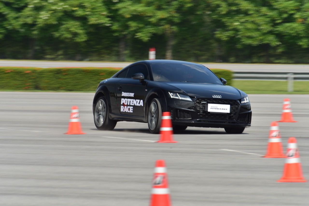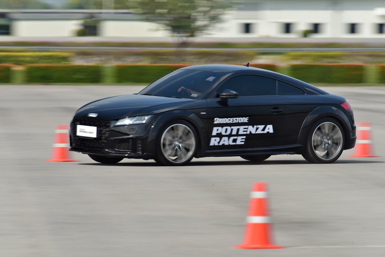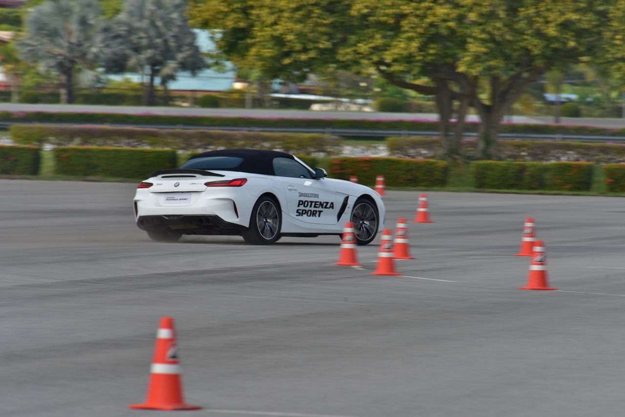 ในสนามทดสอบของ Bridgestone ย่านอำเภอวังน้อย Potenza RE005 พิสูจน์ศักยภาพการทำงานทั้งในแทรคที่แห้งสนิทในวันที่ท้องฟ้าแจ่มใสและมีอุณหภูมิพื้นผิวสูง รวมถึงขับท่ามกลางผิวถนนลาดยางที่จำลองการขับในขณะที่มีฝนตกหนัก ผิวถนนมีน้ำขังเจิ่งนอง จากการทดสอบเปรียบเทียบกับยางคู่แข่งที่ถือว่าเป็นยางสปอร์ตติดอันดับยอดนิยมที่แบรนด์ดังมากมายเลือกใช้ แต่ Potenza ก็เป็นยางที่รถซูปเปอร์คาร์อย่าง Maserati และ Lamborghini ไปจนถึง BMW และ Audi เลือกใช้ ยาง RE005 ทำหน้าที่ได้ดีทั้งบนถนนแห้งและผิวถนนที่ปกคลุมไปด้วยน้ำ นวัตกรรม Enliten ที่ท้ายยาง หมายถึงยางที่เหมาะสำหรับการรับน้ำหนัก สามารถนำไปใช้กับรถยนต์ไฟฟ้าที่มีน้ำหนักมากกว่ารถสันดาปภายใน ทำให้ยางรุ่นนี้เป็นยางที่ตอบโจทย์ทุกความต้องการของนักขับสายสปอร์ตที่ต้องการกริ้บอันมั่นคง พร้อมระยะเบรกที่ดีขึ้นผนวกการรีดน้ำที่ไม่สร้างปัญหาเรื่องการทรงตัวขณะขับท่ามกลางสายฝน