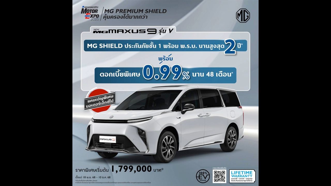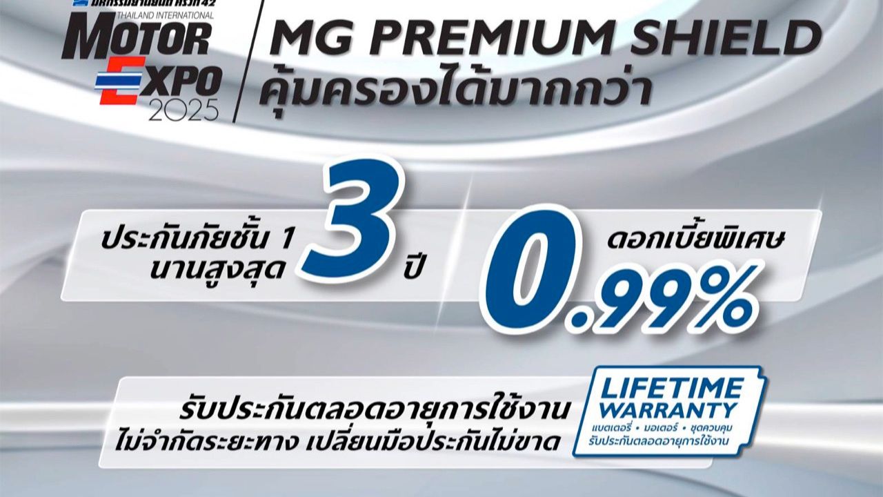 MG SHIELD ประกันภัยชั้นหนึ่ง พร้อม พ.ร.บ. นาน 3 ปี หรือ ดอกเบี้ยพิเศษ 0.99% นาน 48 เดือน MG SHIELD ประกันภัยชั้น 1 พร้อม พ.ร.บ. นาน 1 ปี
