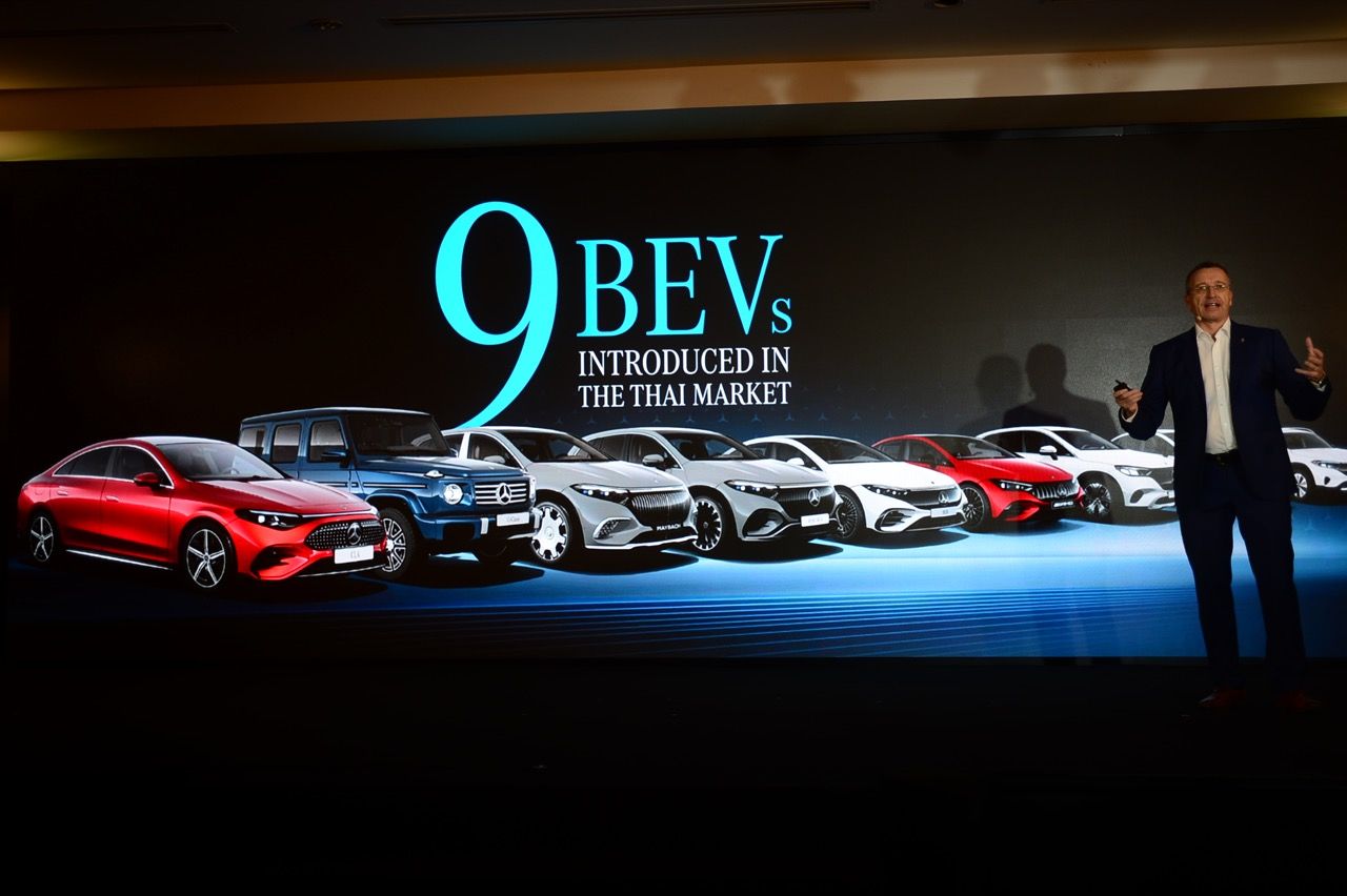 ปัจจุบัน Mercedes-Benz Thailand มีการเปิดตัวและจำหน่ายรถยนต์พลังงานไฟฟ้า 100% รวมกว่า 8 รุ่น ประกอบไปด้วย EQB 250, EQE Sedan, EQE 350 4MATIC SUV, Mercedes-AMG EQE 53, EQS Sedan, EQS 450 4MATIC SUV, Mercedes-Maybach EQS 680 SUV, G 580 with EQ Technology และกำลังจะเปิดตัวรุ่นที่ 9 อย่าง The all-new electric CLA ซึ่งเป็นโมเดลที่ได้รับการตอบรับเป็นอย่างดีจากการเผยโฉมครั้งแรกในประเทศไทยเมื่อช่วงปลายปีที่ผ่านมา โดยจะเปิดตัวอย่างเป็นทางการและประกาศราคาจำหน่ายในงาน Motor Show 2026 ในช่วงเดือนมีนาคม