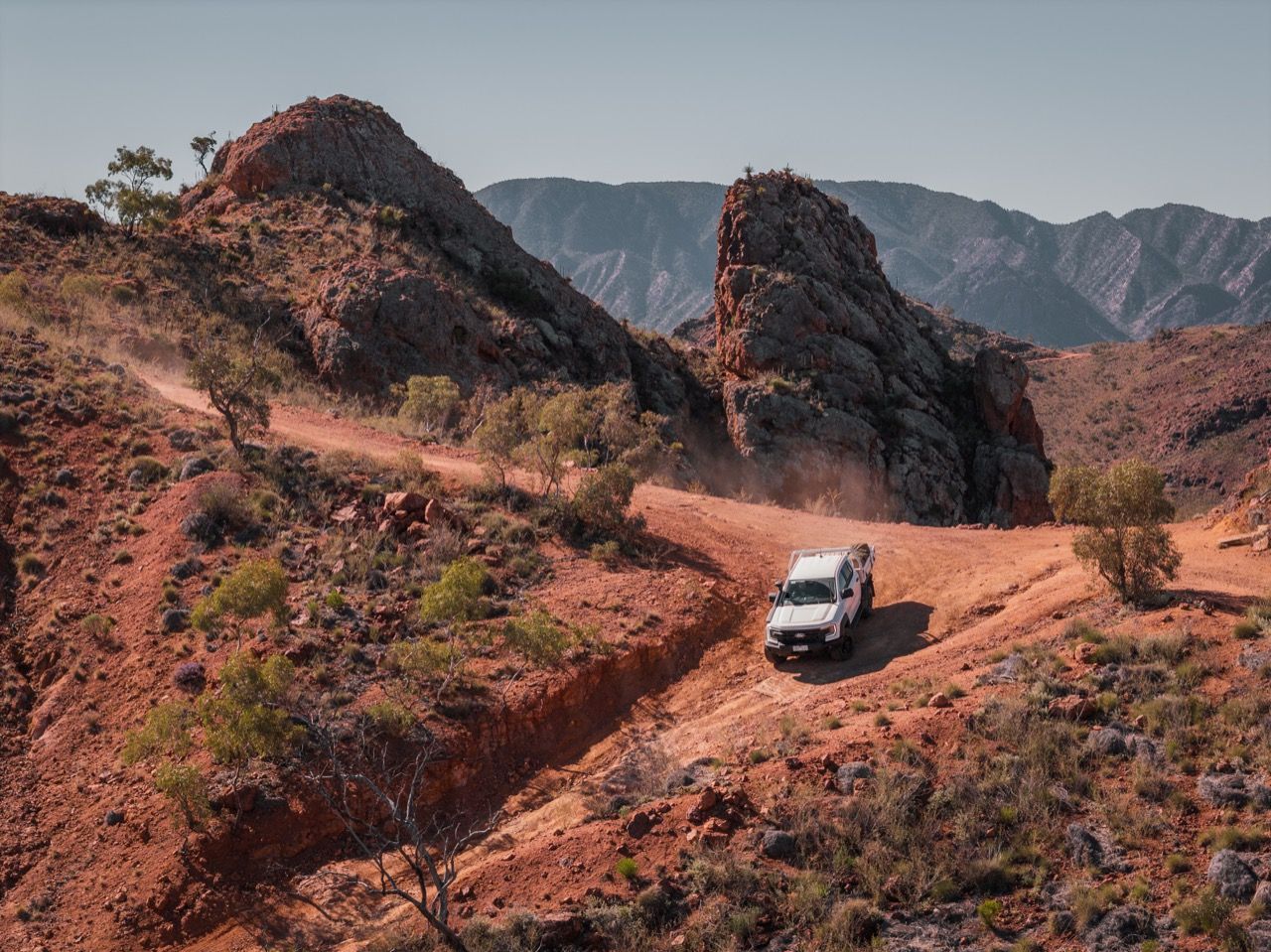 นอกเหนือจากสนามยู แยงส์ พรูฟวิ่ง กราวด์ ของ Ford ทีมวิศวกรได้เสาะหาเส้นทางระดับนักผจญภัยทั่วออสเตรเลีย เพื่อเฟ้นหาบททดสอบสุดโหด หนึ่งในนั้นคือเส้นทางที่ได้รับการขนานนามว่า ‘Rocky Track’4 ซึ่งเป็นเส้นทางสุดทรหดที่แคบจนแทบจะพอดีกับตัวรถ และเต็มไปด้วยหินขรุขระสูงชันและแหลมคม “Rocky Track ไม่ใช่เส้นทางที่รถขับเคลื่อนสี่ล้อทั่วไปจะสามารถลุยเข้าไปได้” ร็อบ ฮูโก้ ผู้ควบคุมดูแลวิศวกรรมยานยนต์ กล่าว “แต่ Ford Ranger Super Duty ไม่ใช่รถรุ่นมาตรฐานทั่วไป และเราไม่ได้เพียงแค่ขับรถคันนี้ขึ้นไปบน Rocky Track เท่านั้น แต่เราไปพิชิตเส้นทางนี้พร้อมกับการบรรทุกน้ำหนักรวมกว่า 1,000 กิโลกรัมไว้ที่กระบะท้าย"